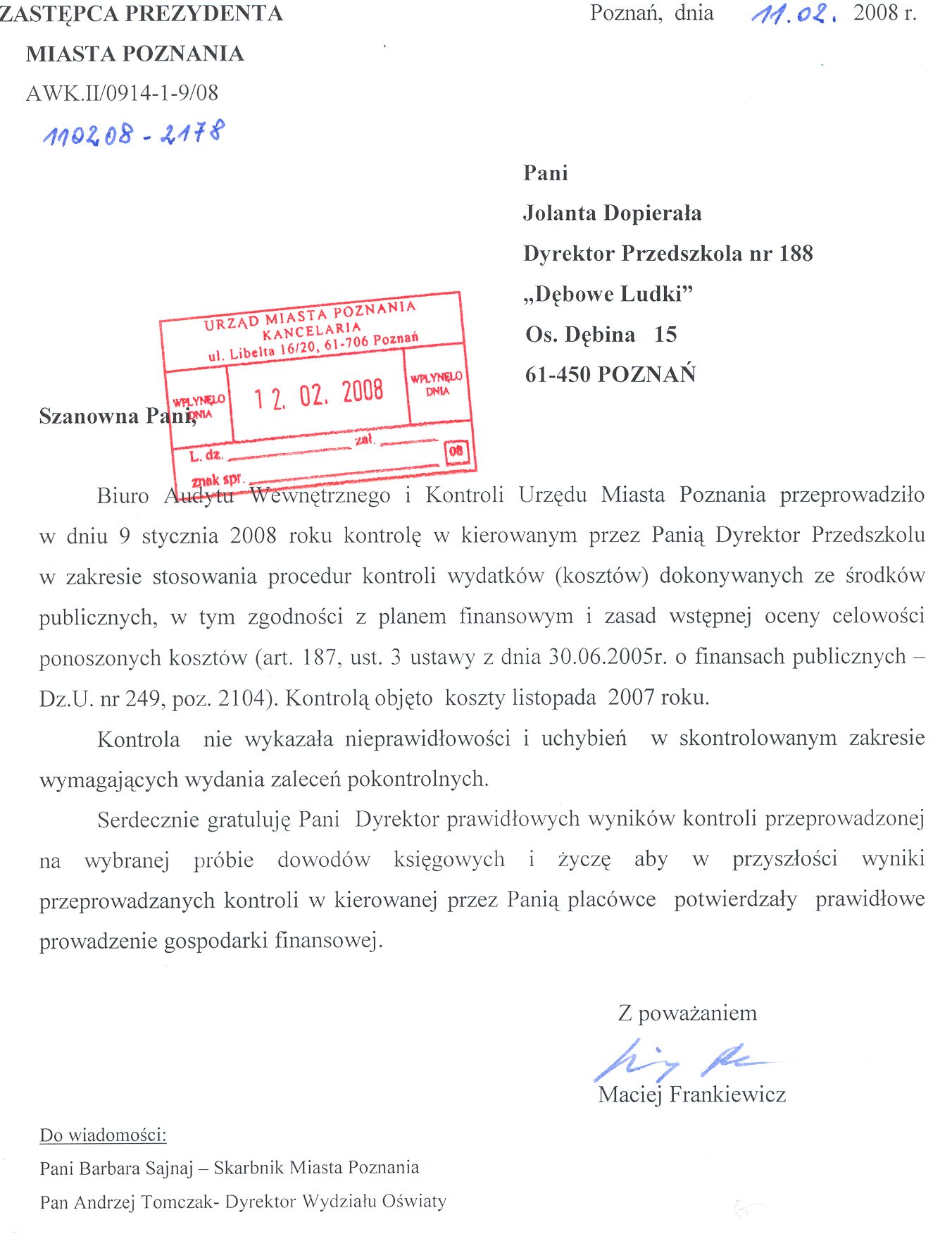 Informacja pobrana do BIP automatycznie z elektronicznego systemu zarządzania dokumentacją Urzędu Miasta Poznania.