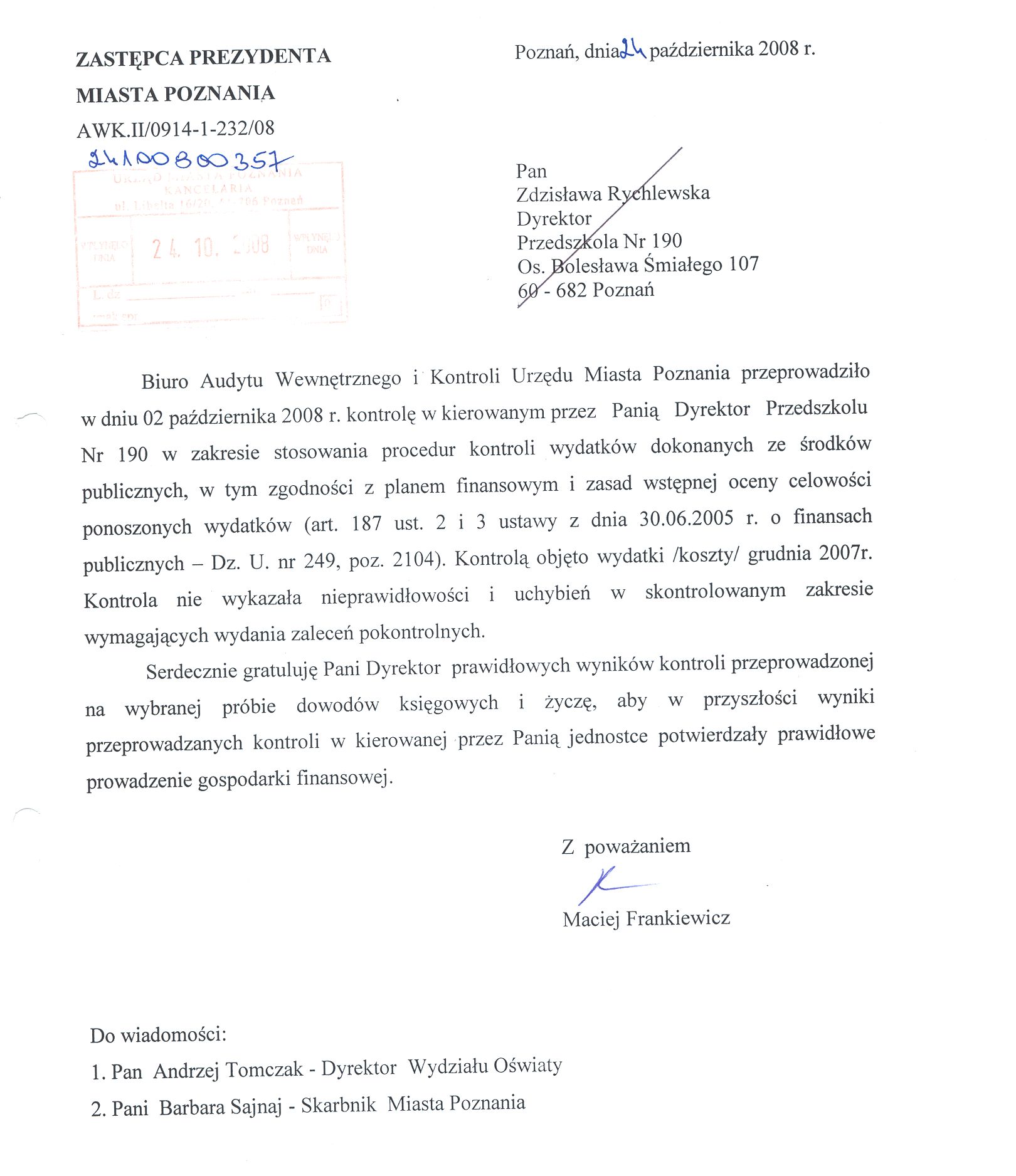 Informacja pobrana do BIP automatycznie z elektronicznego systemu zarządzania dokumentacją Urzędu Miasta Poznania.