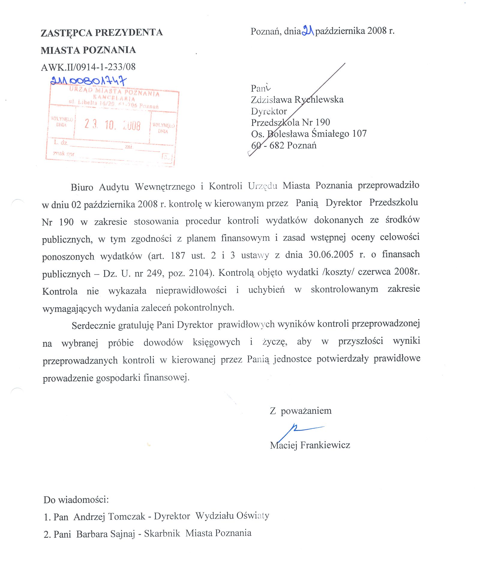 Informacja pobrana do BIP automatycznie z elektronicznego systemu zarządzania dokumentacją Urzędu Miasta Poznania.