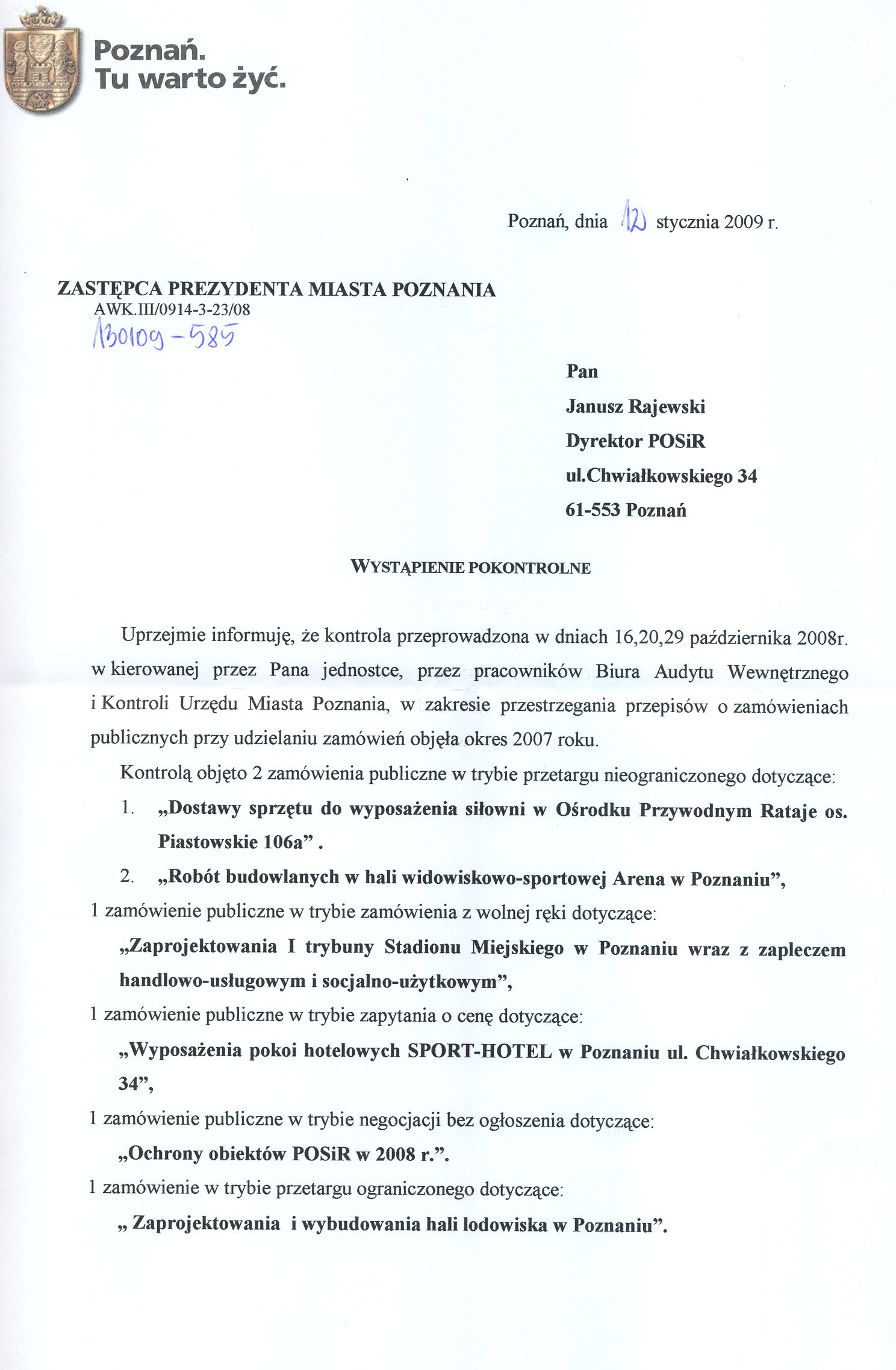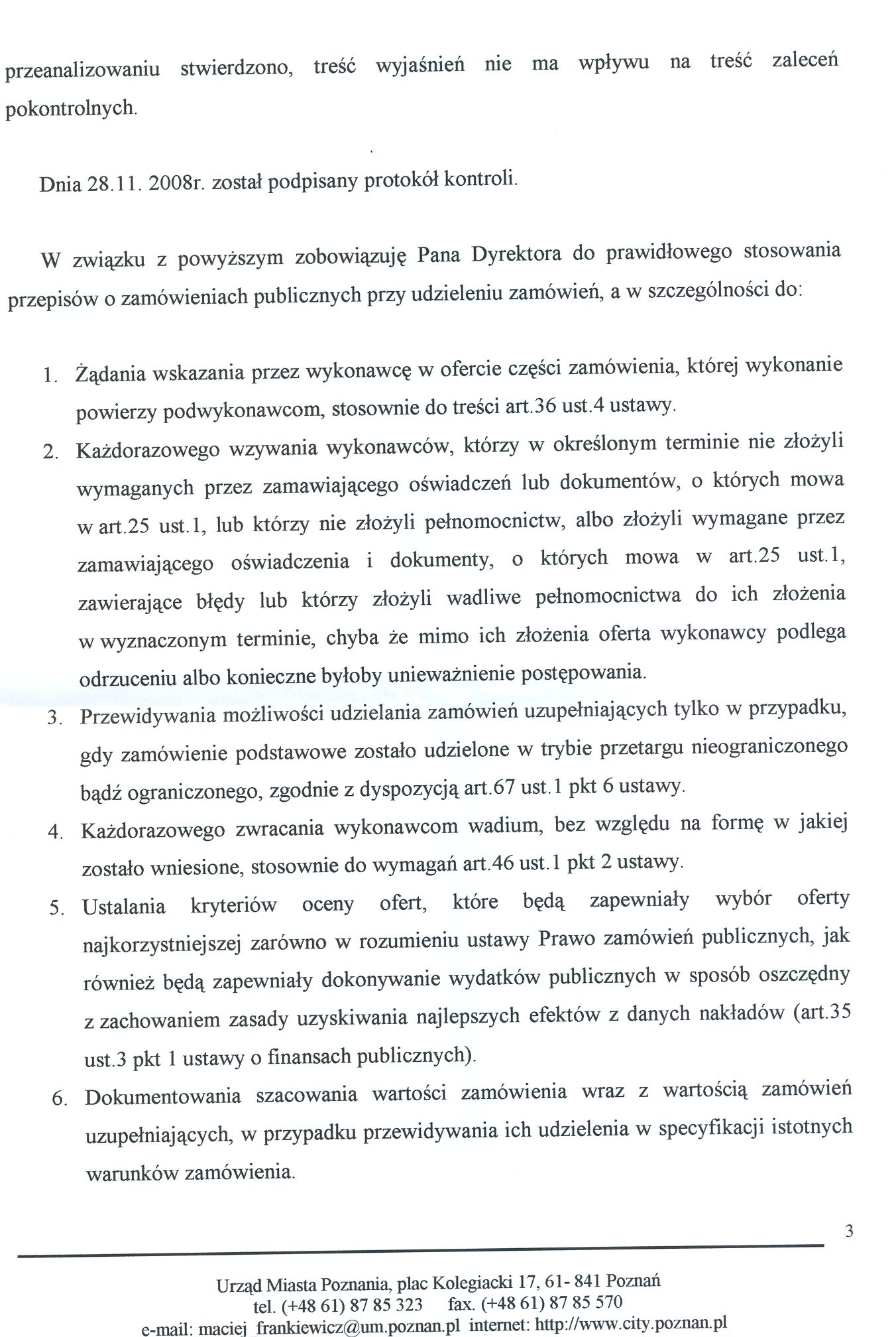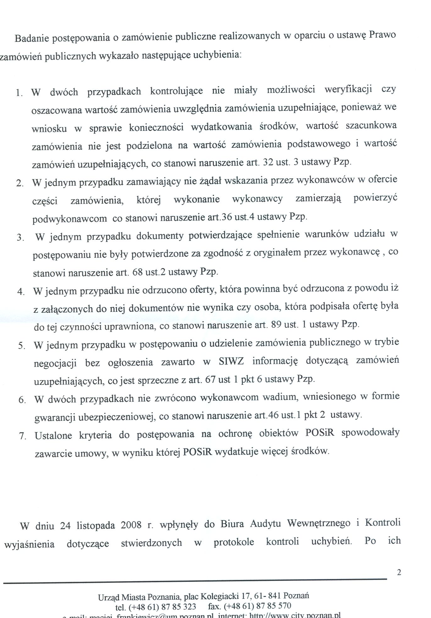 - Zobowiązano Dyrektora POSiR do przestrzegania przepisów o zamówieniach publicznych, a wszczególności do: