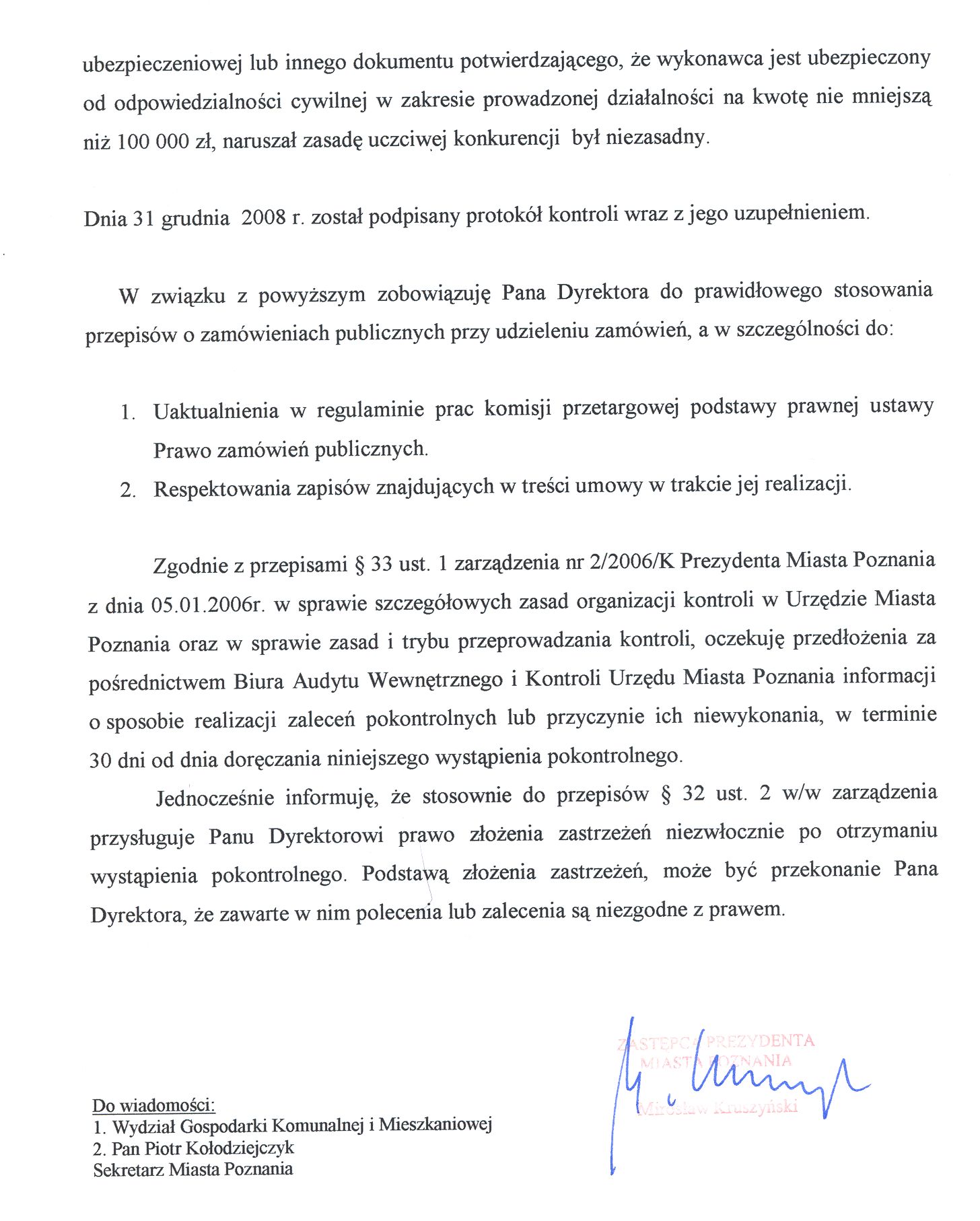 - Zobowiązano Dyrektora do prawidłowego stosowania przepisów ustawy, a w szczególności do: