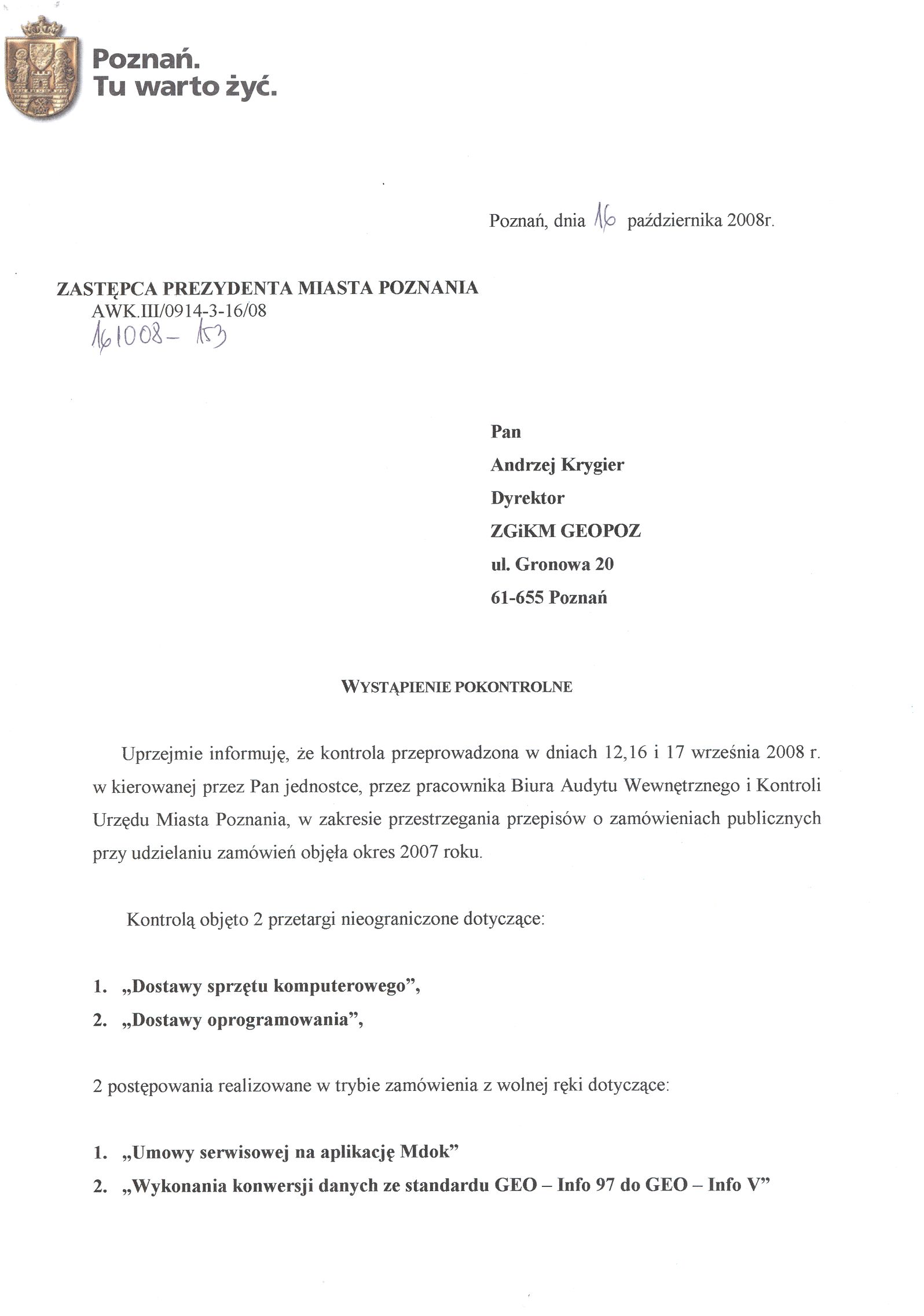 Informacja pobrana do BIP automatycznie z elektronicznego systemu zarządzania dokumentacją Urzędu Miasta Poznania.