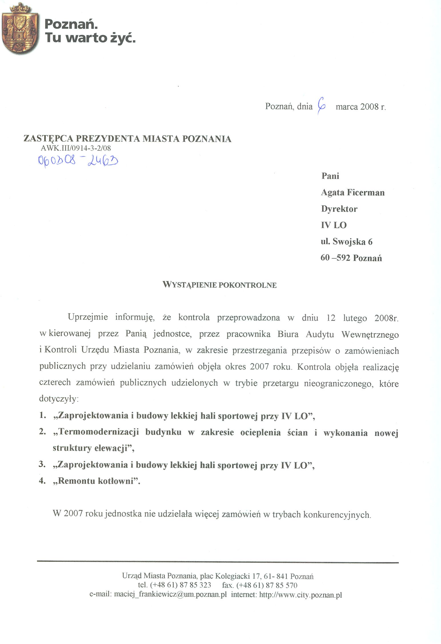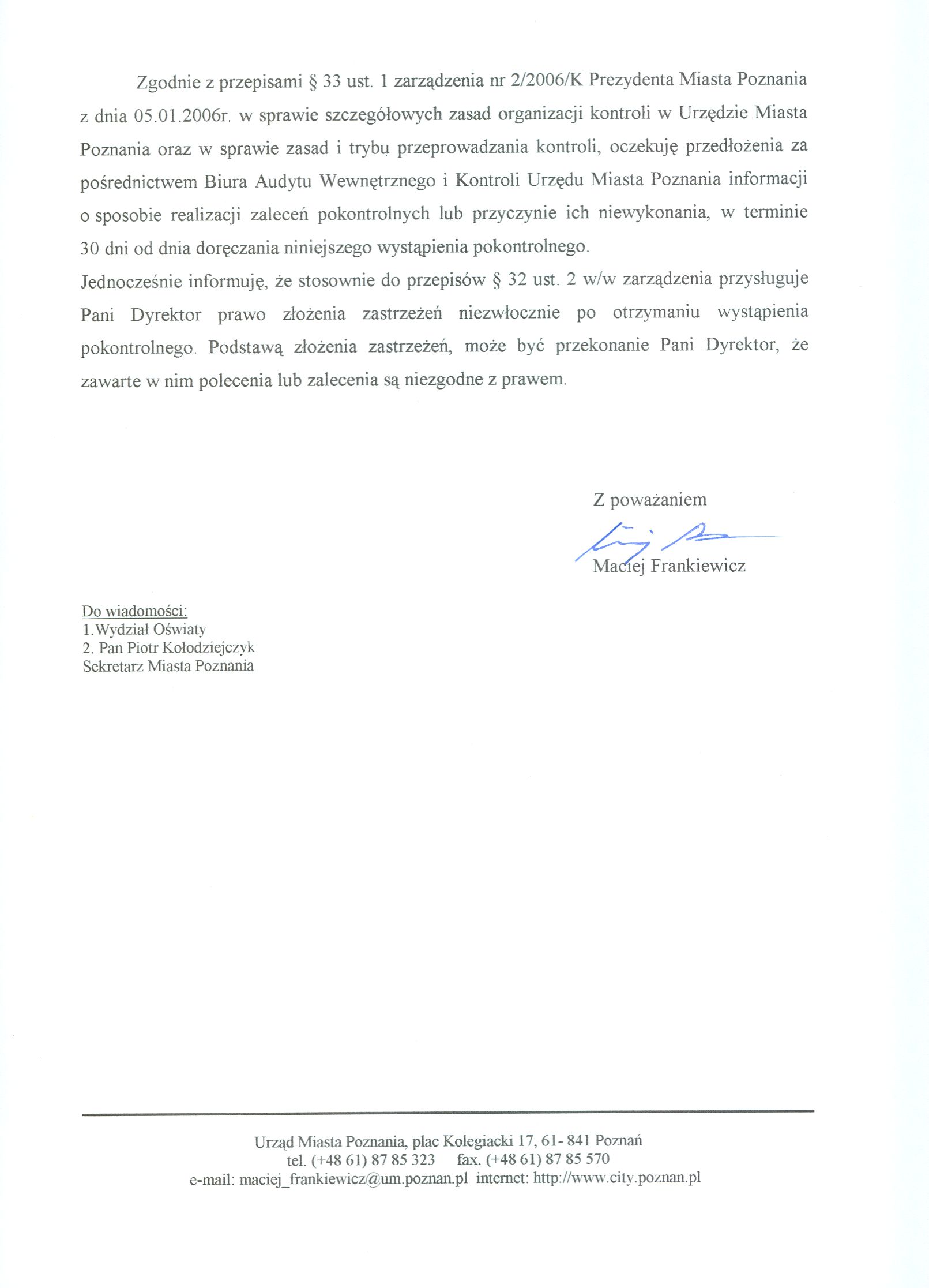 Informacja pobrana do BIP automatycznie z elektronicznego systemu zarządzania dokumentacją Urzędu Miasta Poznania.