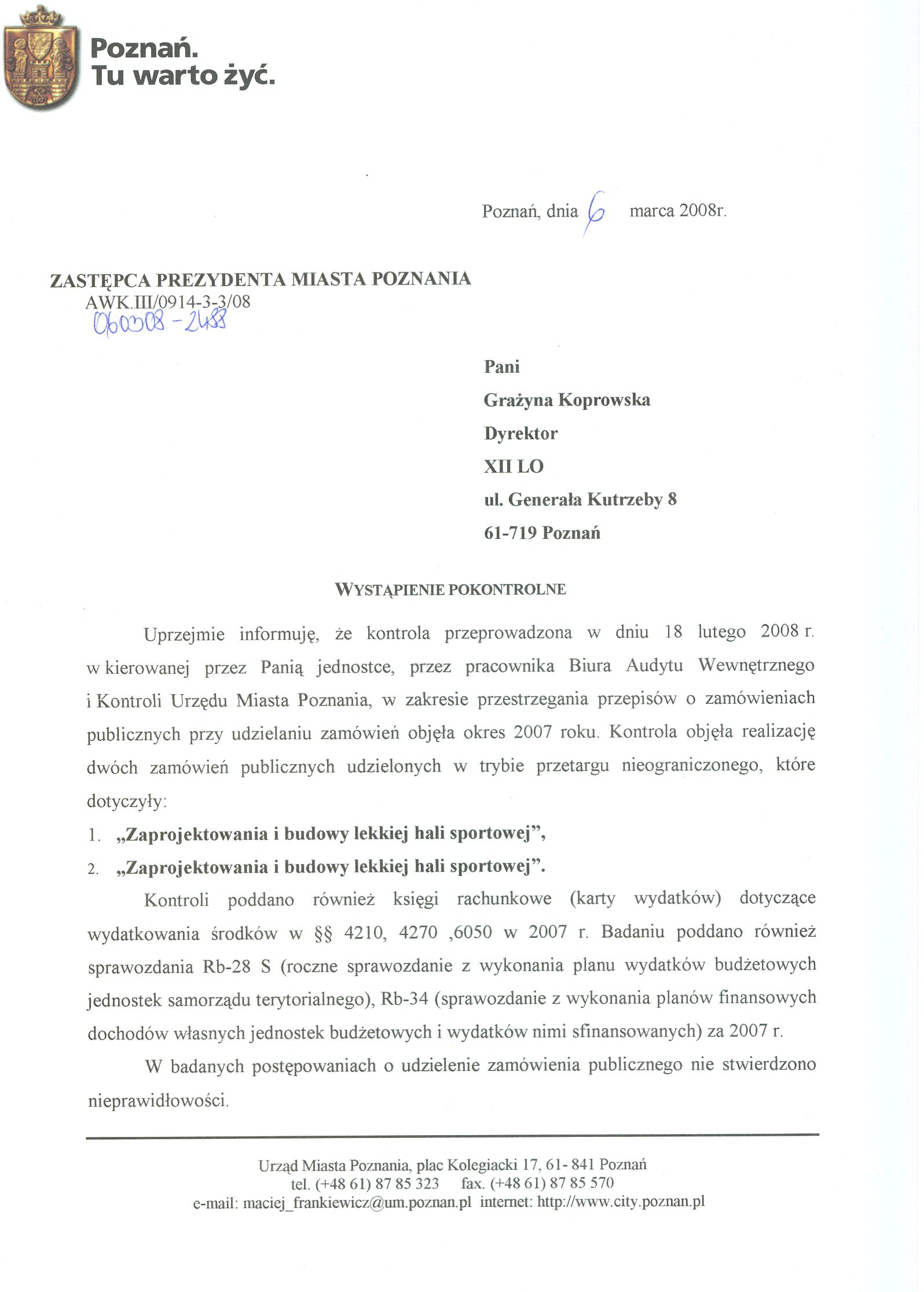 Informacja pobrana do BIP automatycznie z elektronicznego systemu zarządzania dokumentacją Urzędu Miasta Poznania.