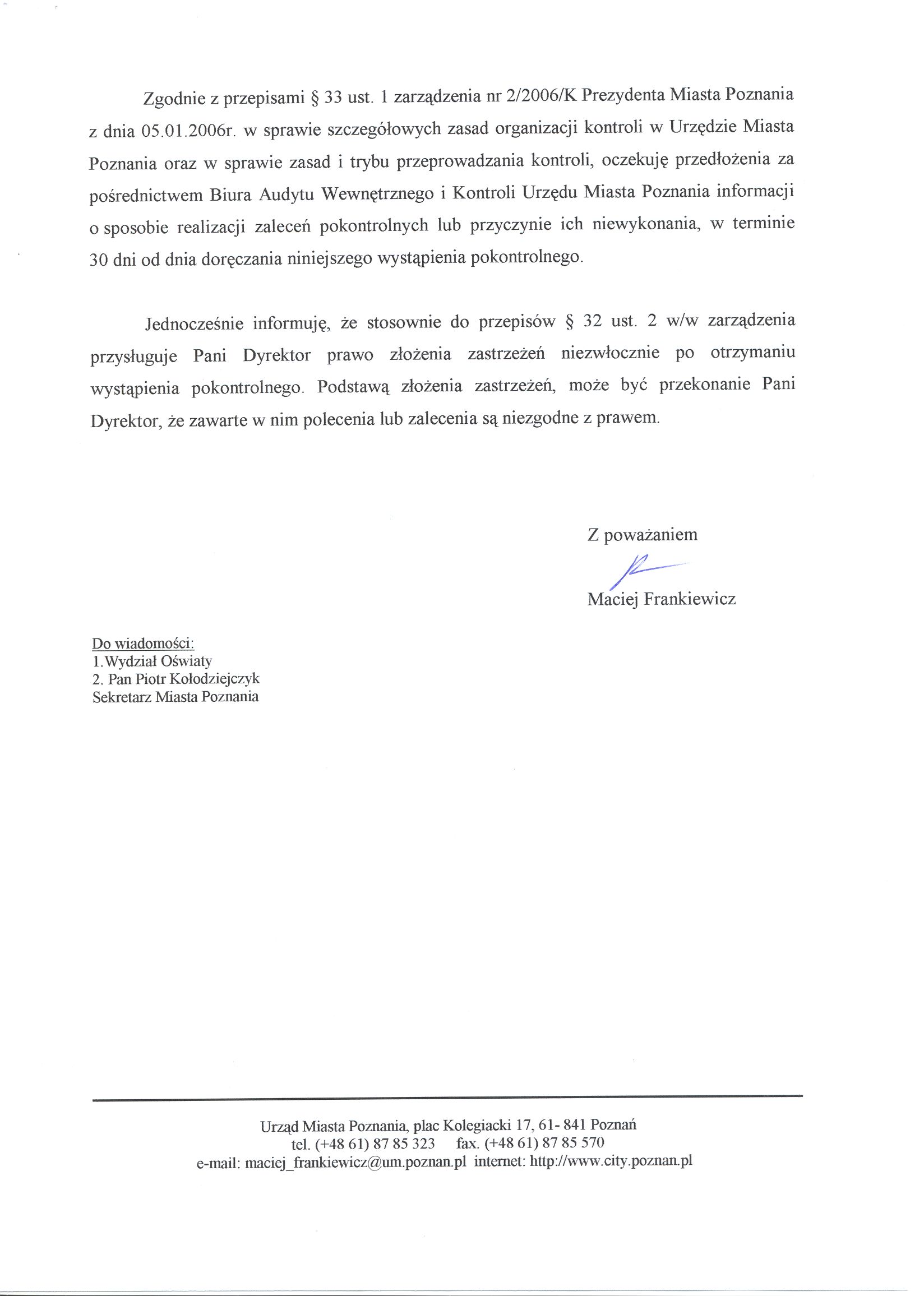 Informacja pobrana do BIP automatycznie z elektronicznego systemu zarządzania dokumentacją Urzędu Miasta Poznania.