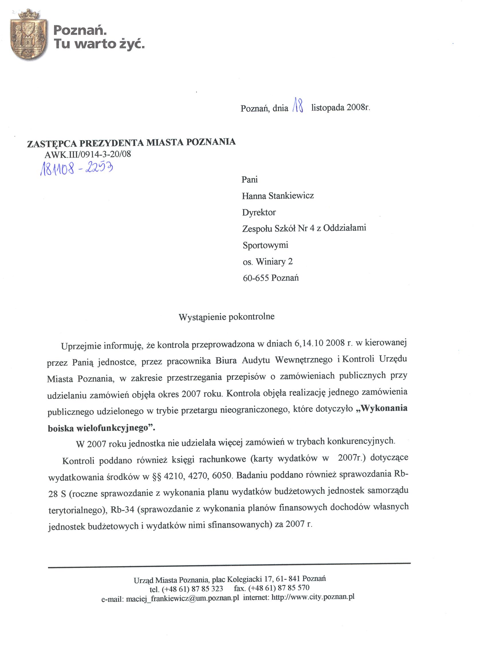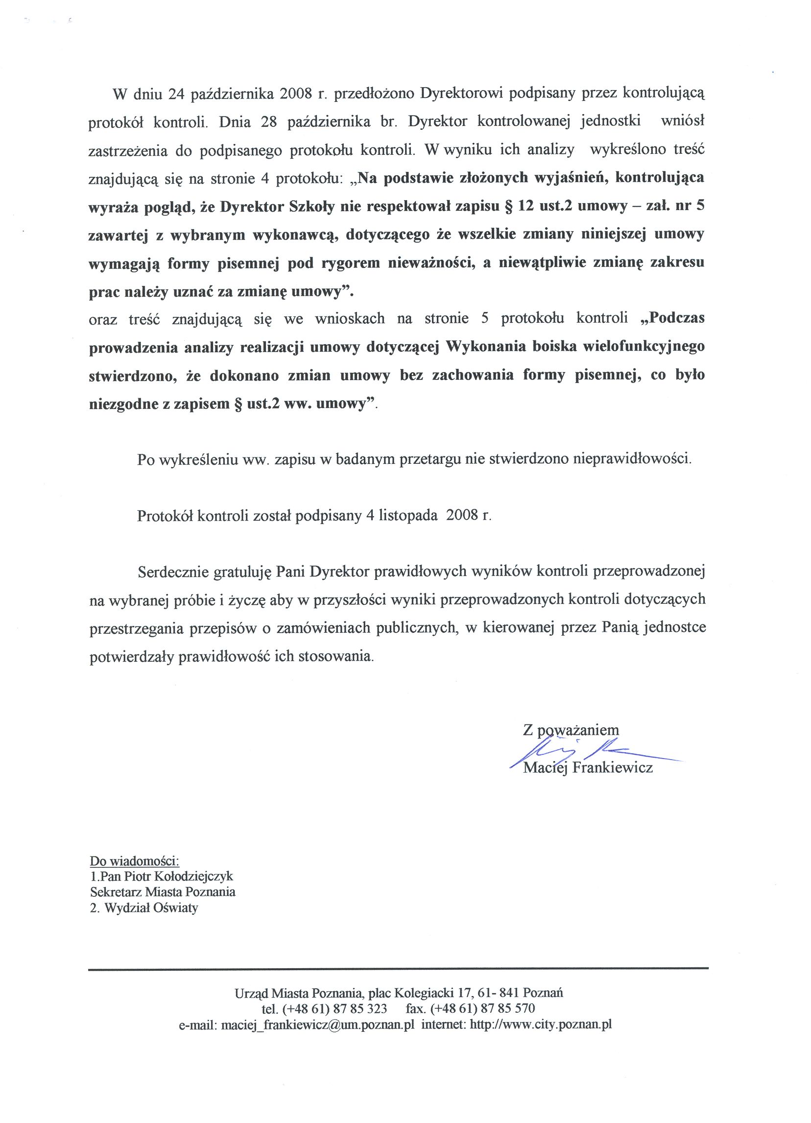 Informacja pobrana do BIP automatycznie z elektronicznego systemu zarządzania dokumentacją Urzędu Miasta Poznania.