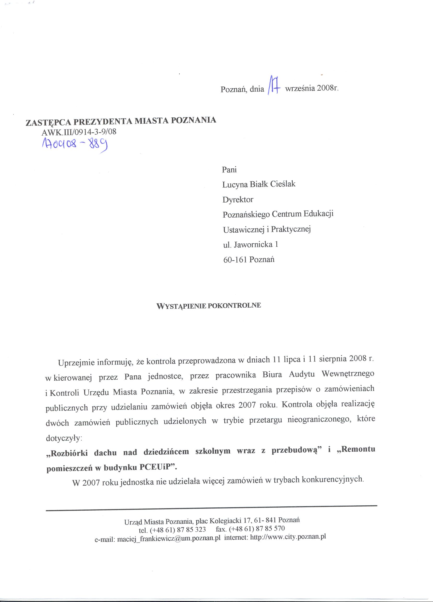 Kontrola: AWK.III/0914-3-9/08