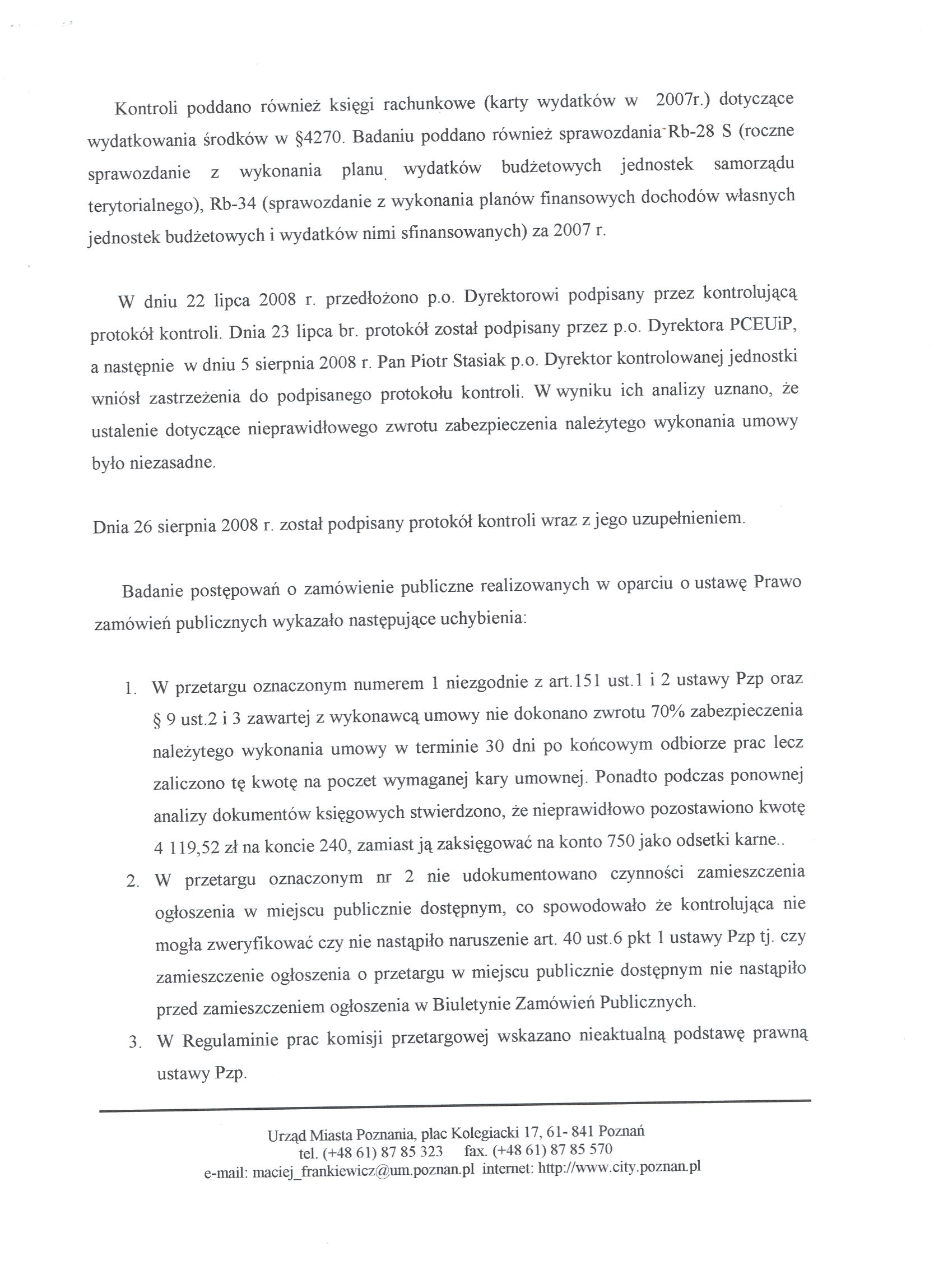 - 1. Zwrócenia uwagi pracownikom zajmującym się zamówieniami publicznymi aby przestrzegali przepisów zamówieniach publicznych, a w szczególności aby informowali dział finansowy o konieczności zwrócenia zabezpieczenie należytego wykonania umowy zgodnie z art.151 ust.1 i 2 ustawy Pzp.