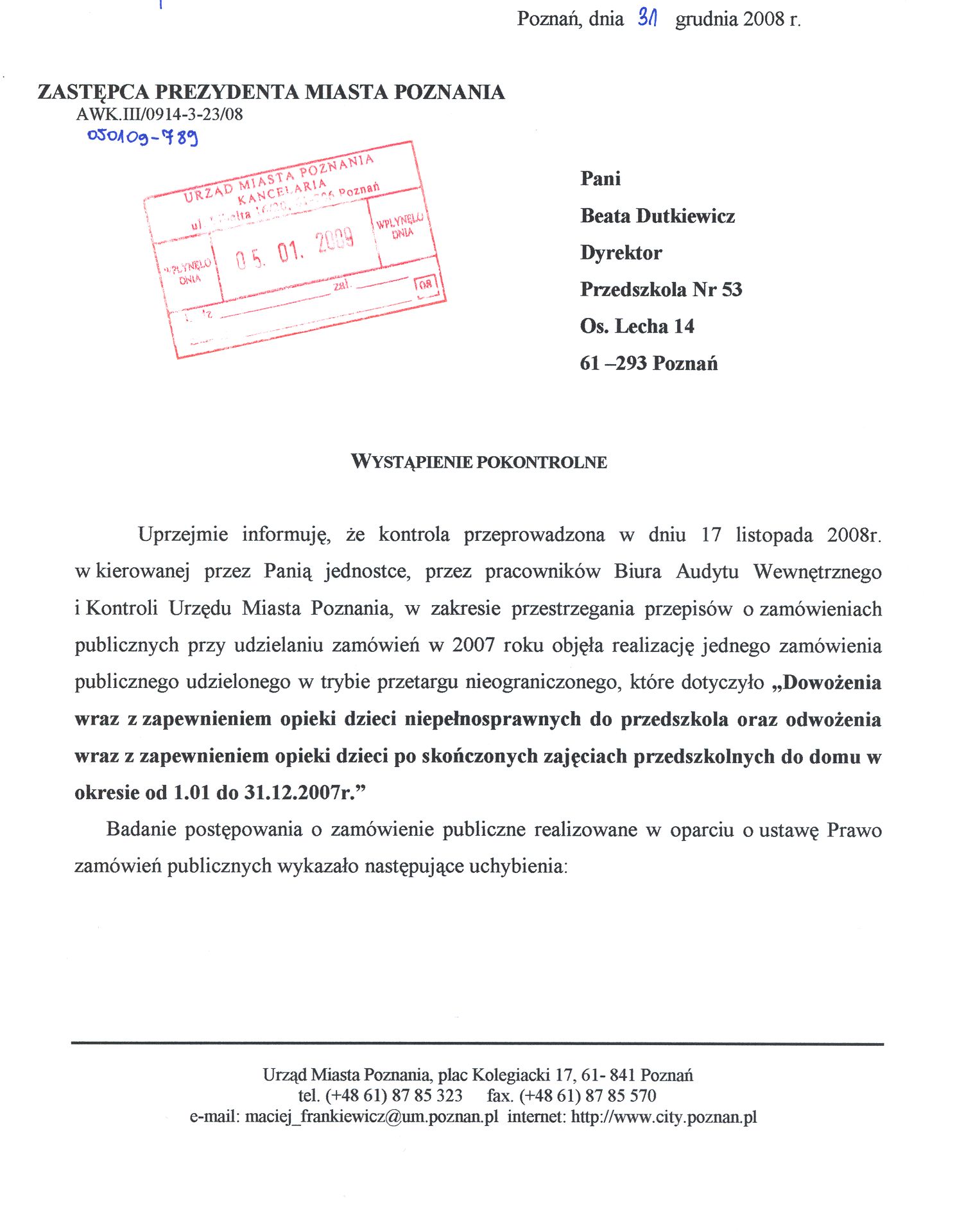 Informacja pobrana do BIP automatycznie z elektronicznego systemu zarządzania dokumentacją Urzędu Miasta Poznania.