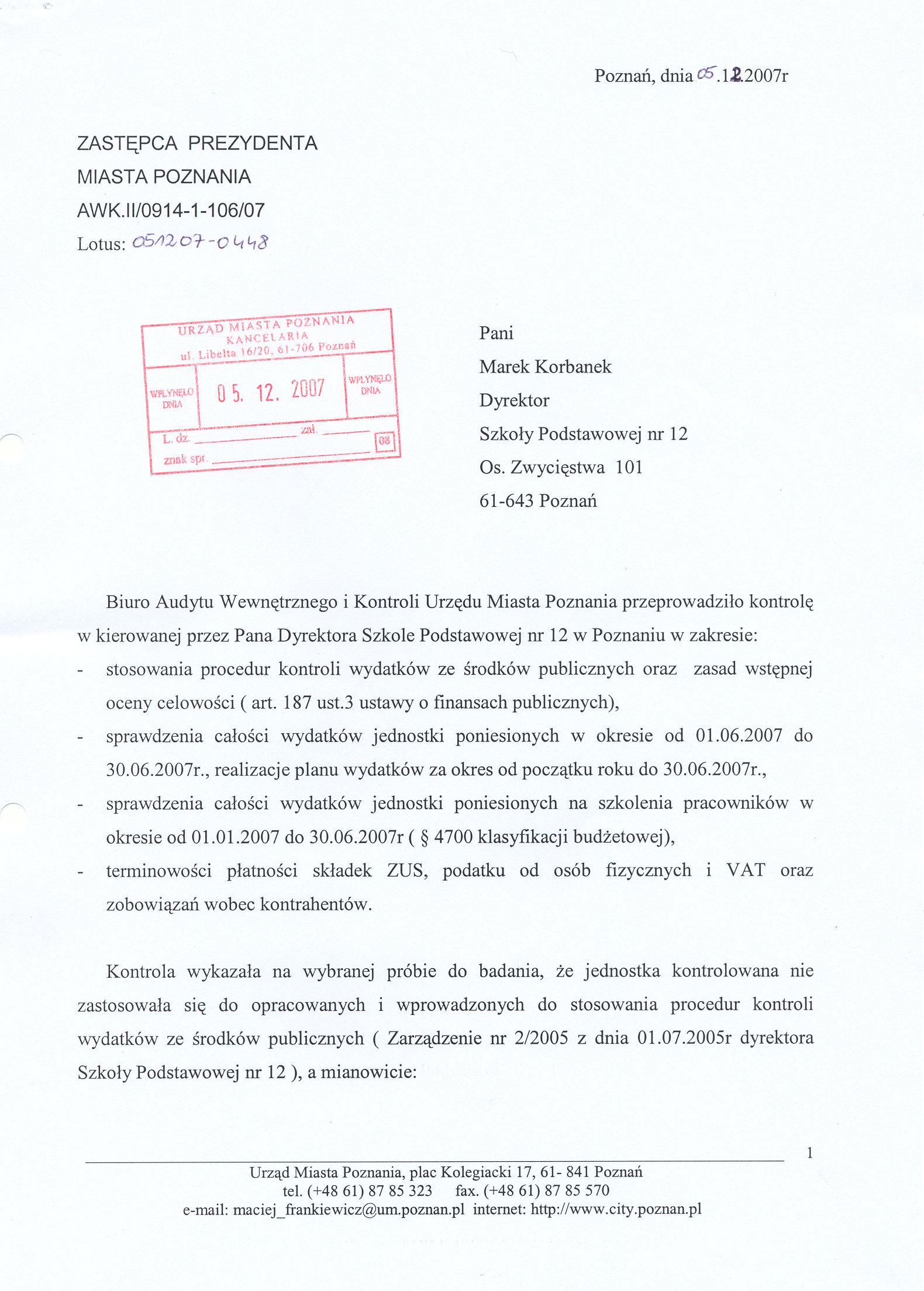 Kontrola: AWK.II/0914-1-106/07
