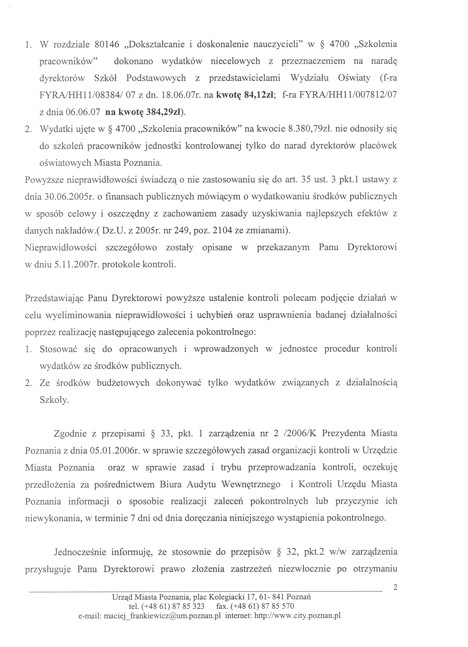 - Stosować sie do opracowanych i wprowdzonych w jednostce procedur kontroli wydatków ze środków publicznych.