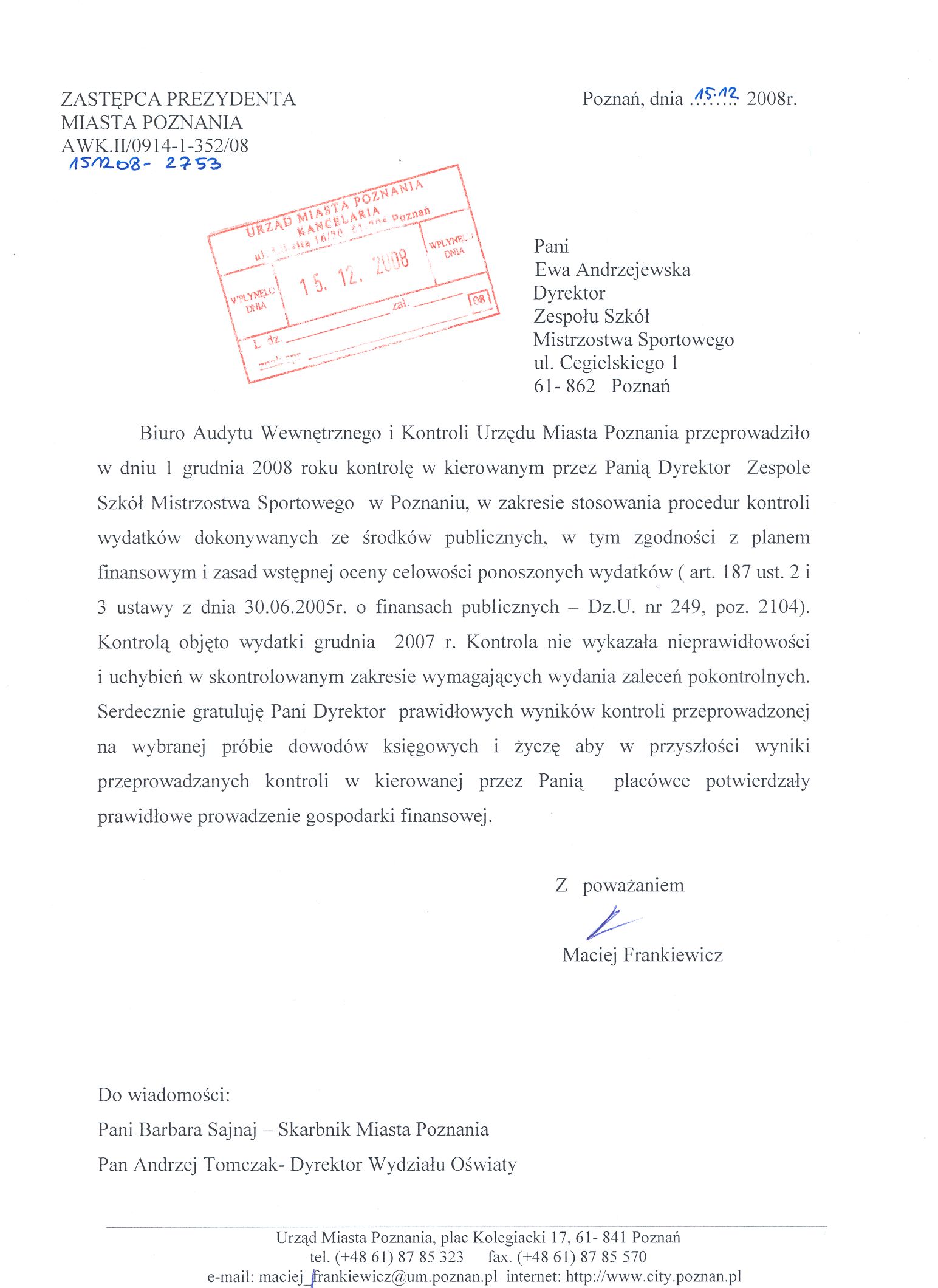 Informacja pobrana do BIP automatycznie z elektronicznego systemu zarządzania dokumentacją Urzędu Miasta Poznania.