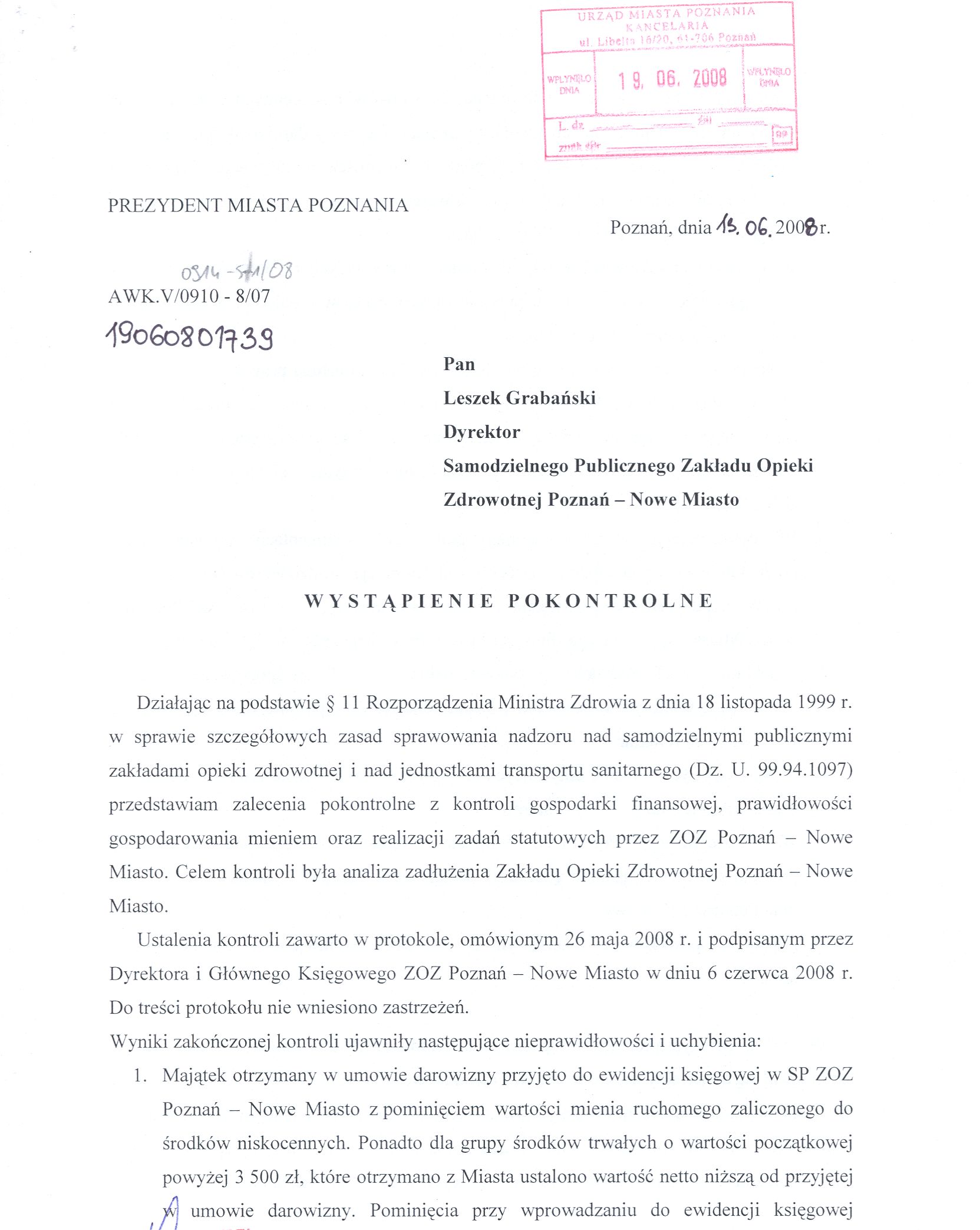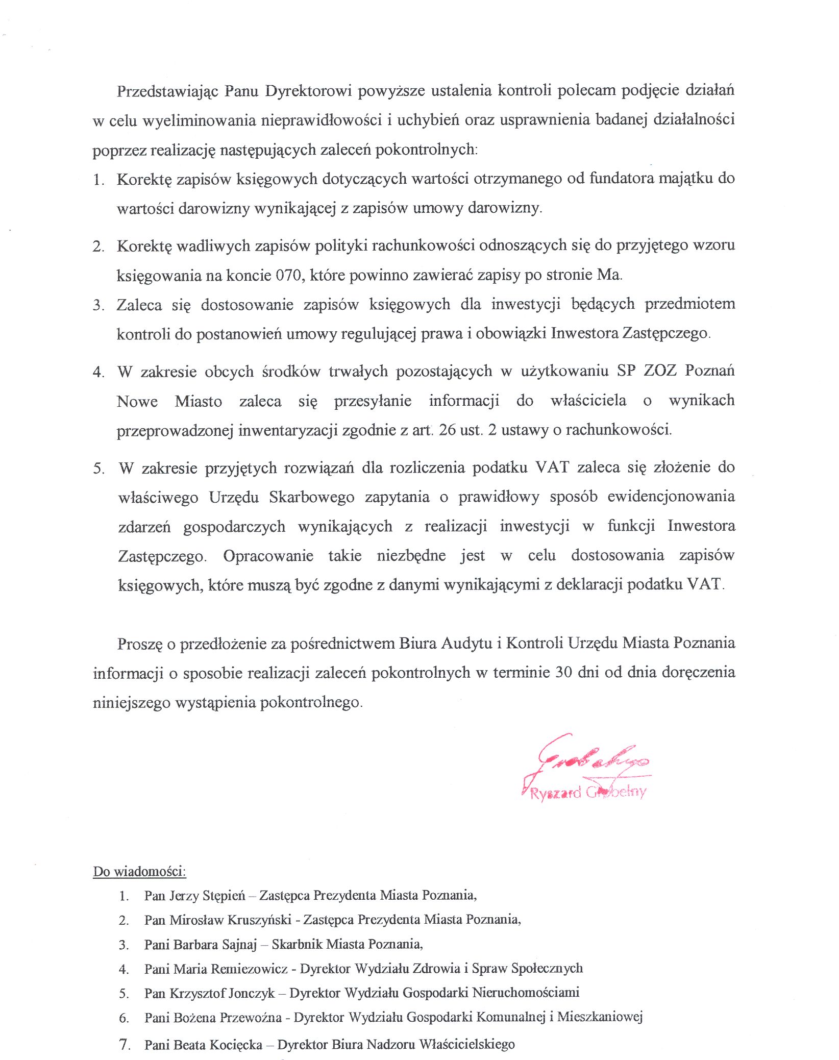 - Zalecenia znajdują się w wystąpieniu pokontrolnym