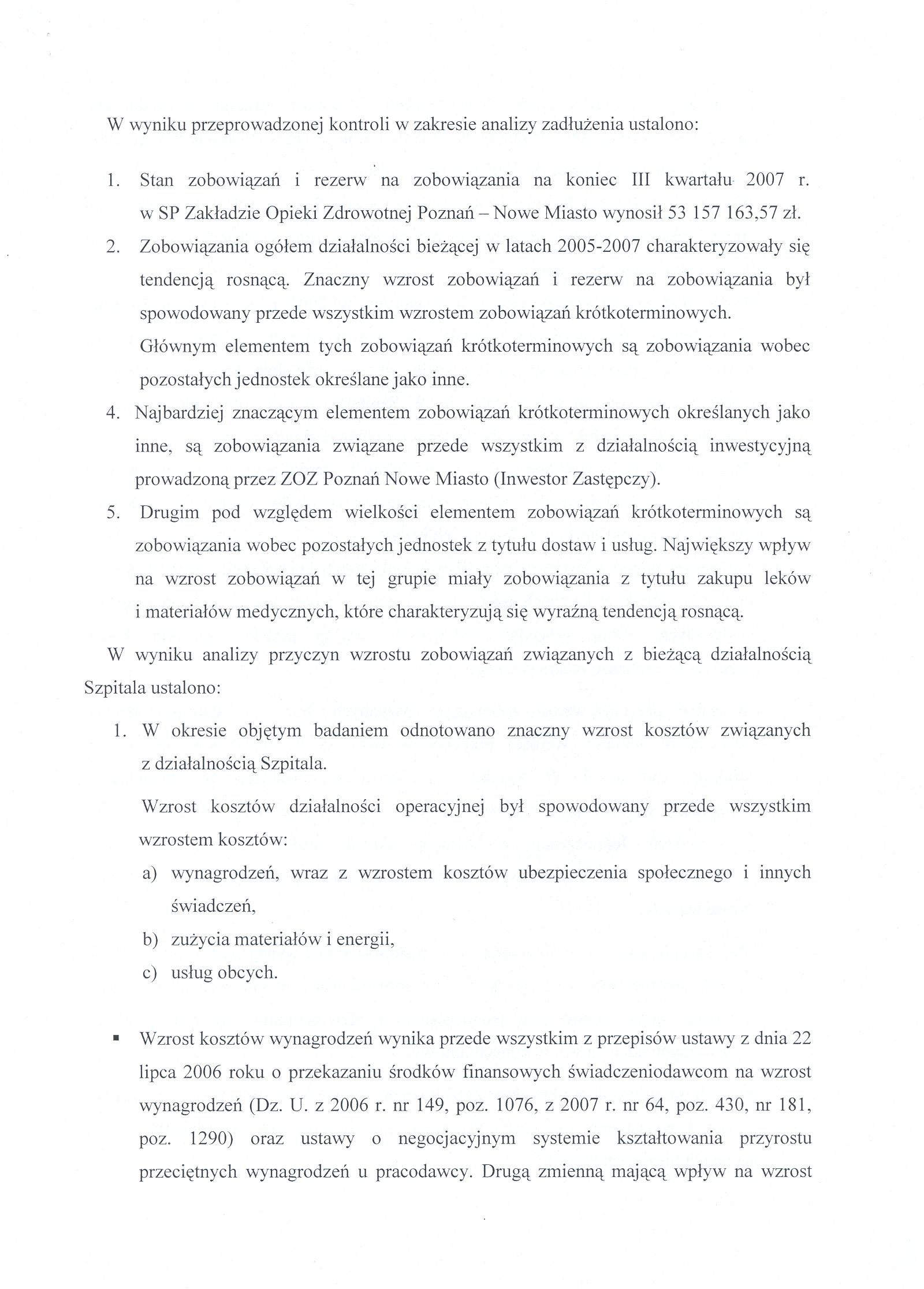 Analiza zadłużenia Zakładu Opieki Zdrowotnej Poznań - Nowe Miasto