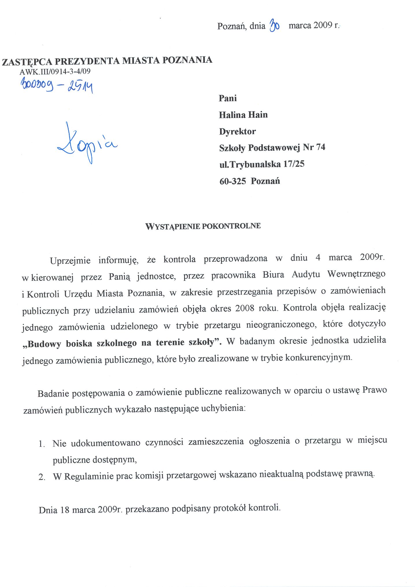 Informacja pobrana do BIP automatycznie z elektronicznego systemu zarządzania dokumentacją Urzędu Miasta Poznania.