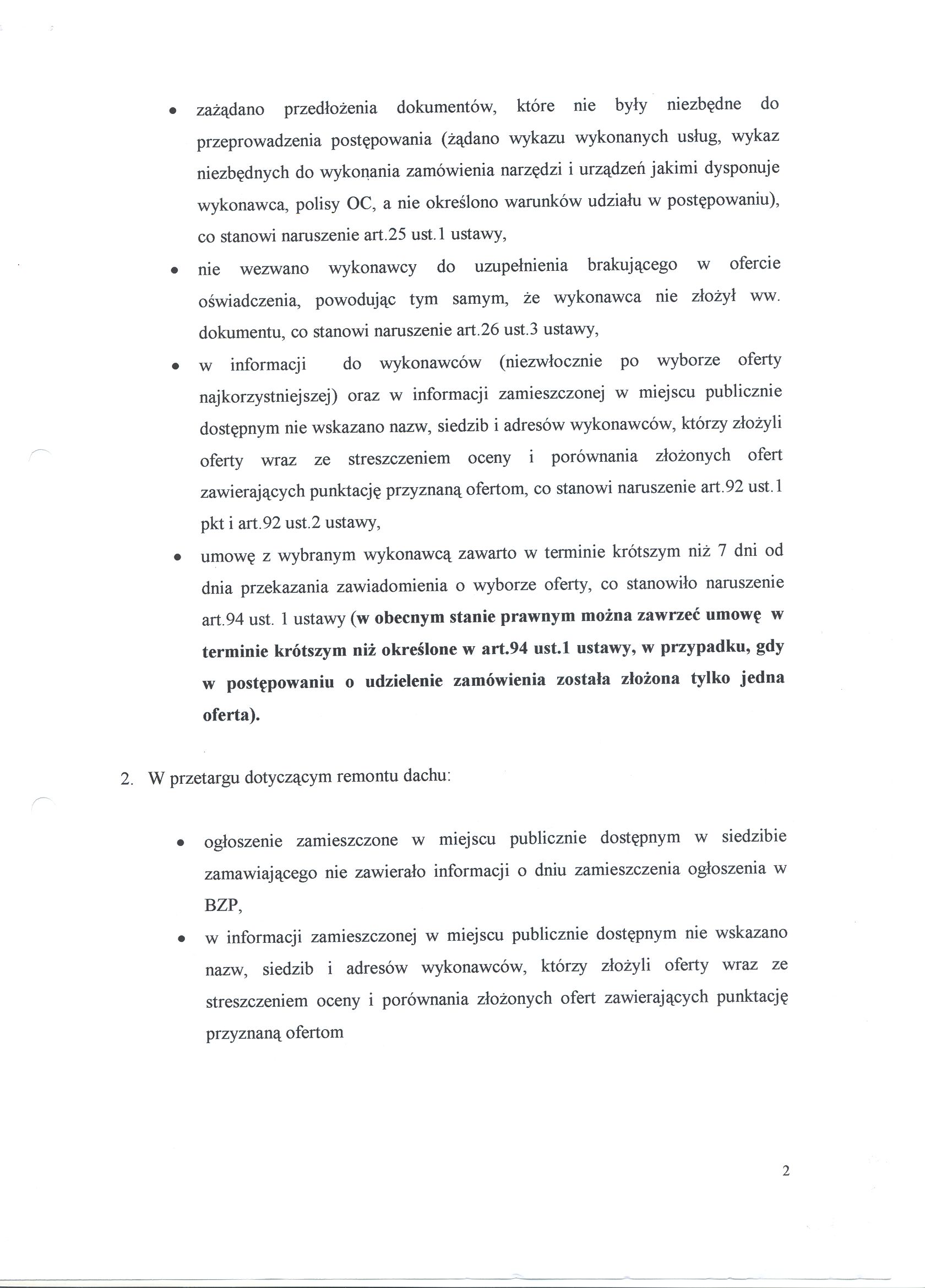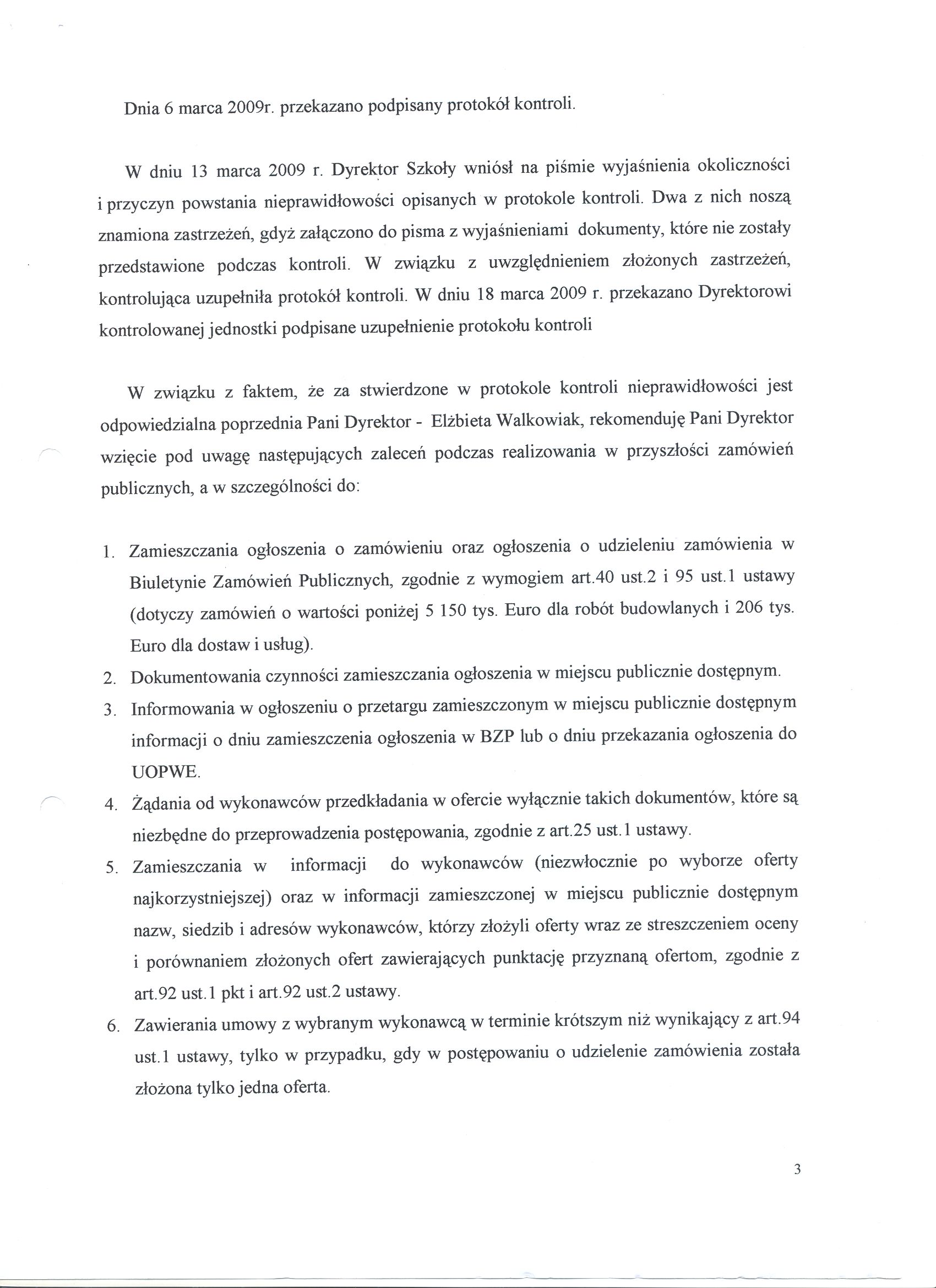 - Zarekomendowano Pani Dyrektor wzięcie pod uwagę następujących zaleceń podczas realizowania w przyszłości zamówień publicznych, a w szczególności do: