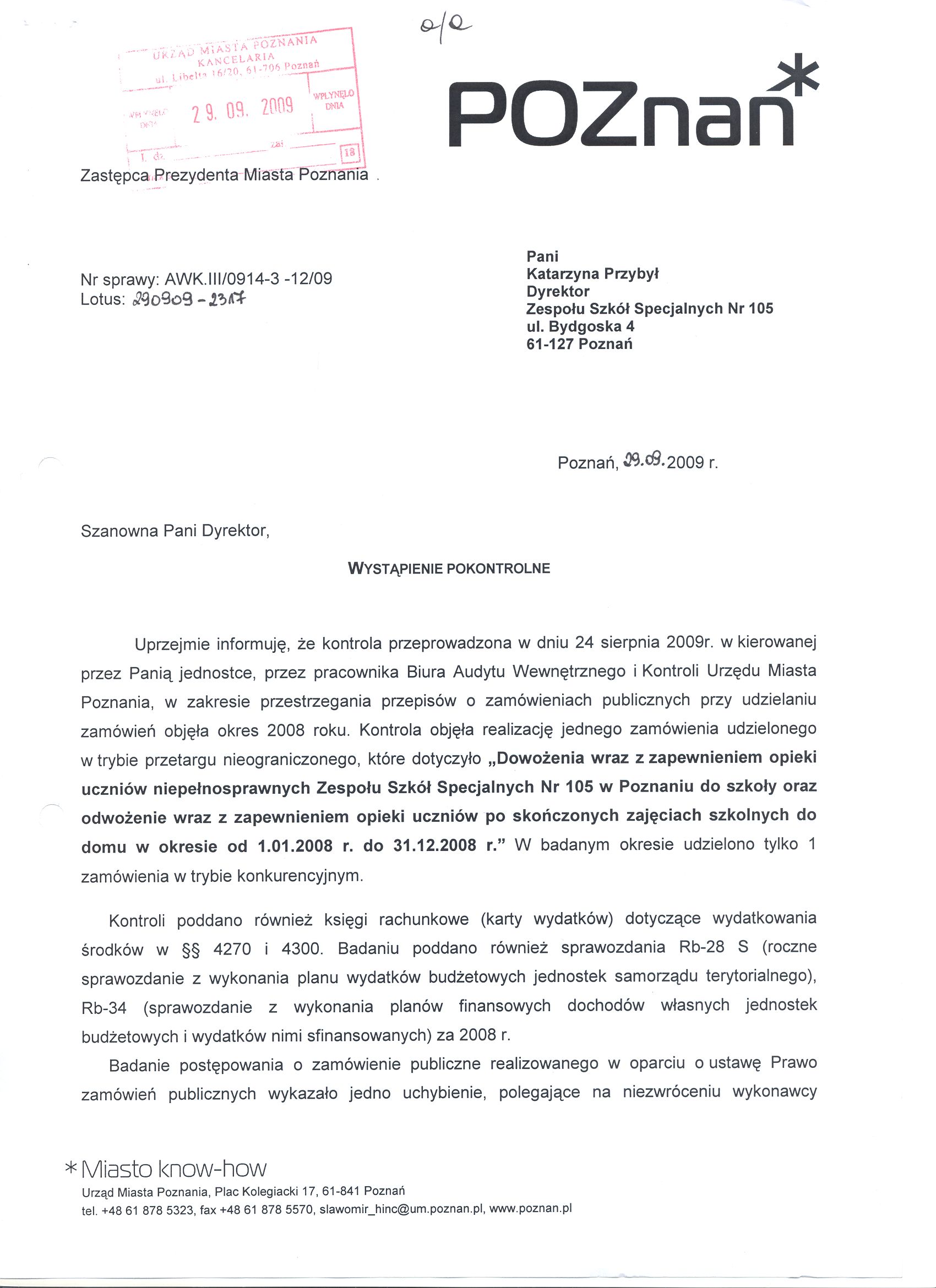 Kontrola: AWK.III/0914-3-12/09