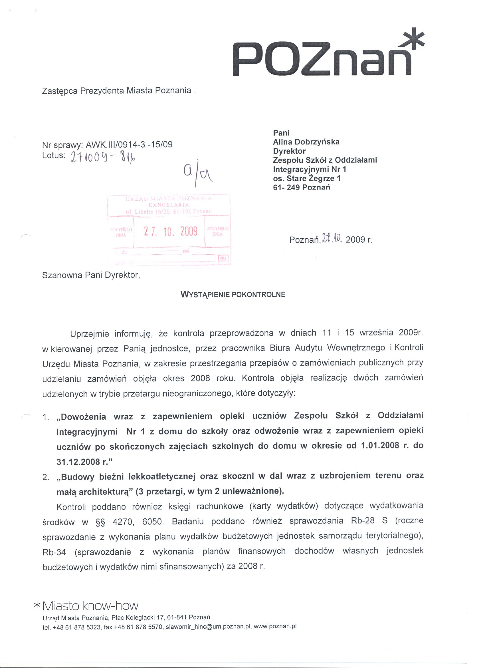 Informacja pobrana do BIP automatycznie z elektronicznego systemu zarządzania dokumentacją Urzędu Miasta Poznania.