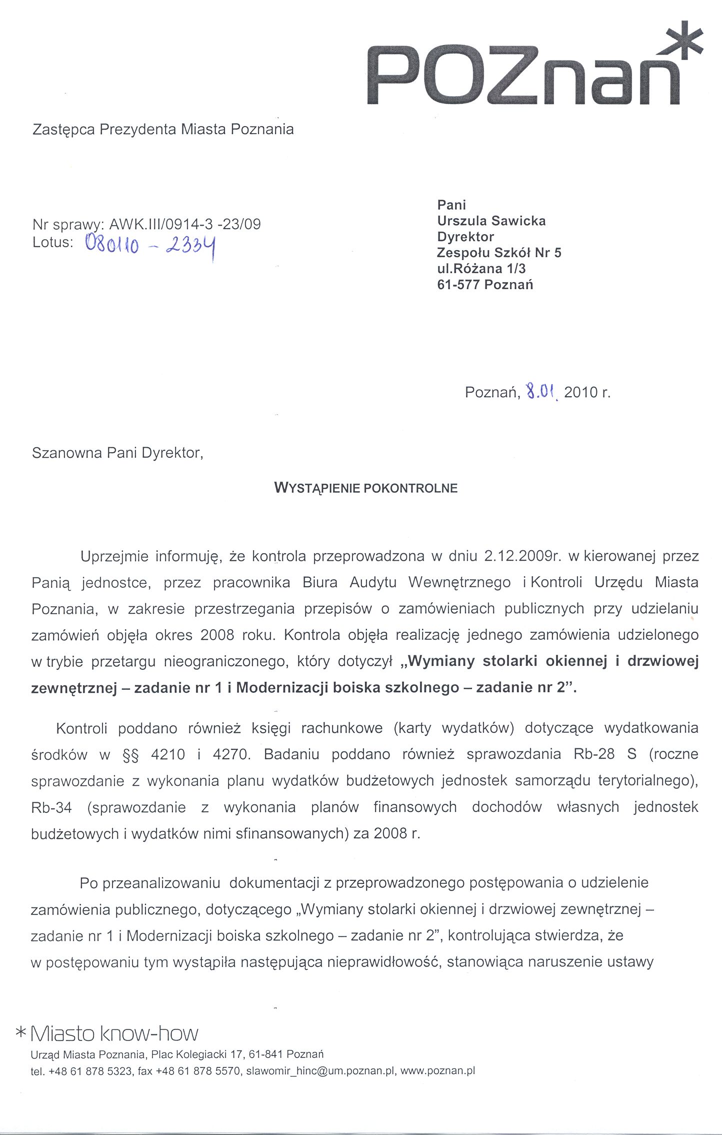 Kontrola: AWK.III/0914-3-23/09