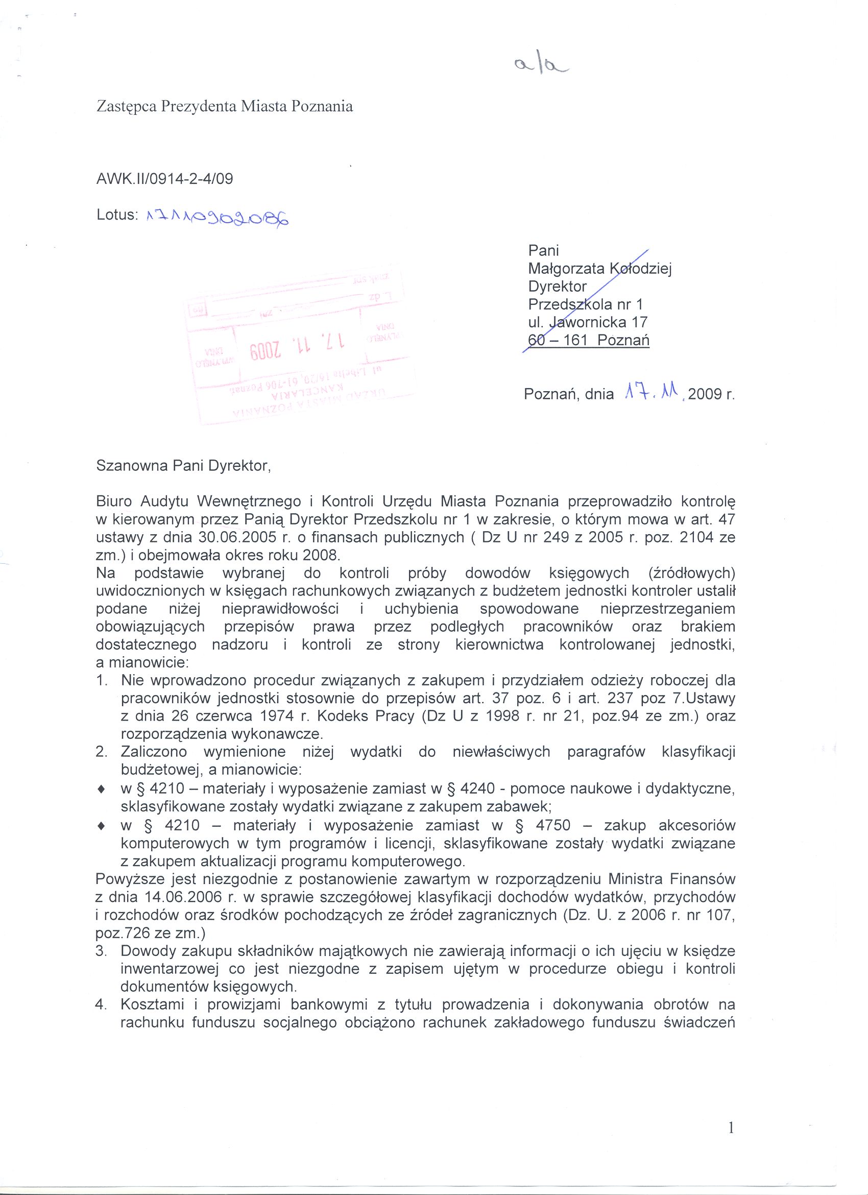 Kontrola: AWK.II/0914-2-4/09