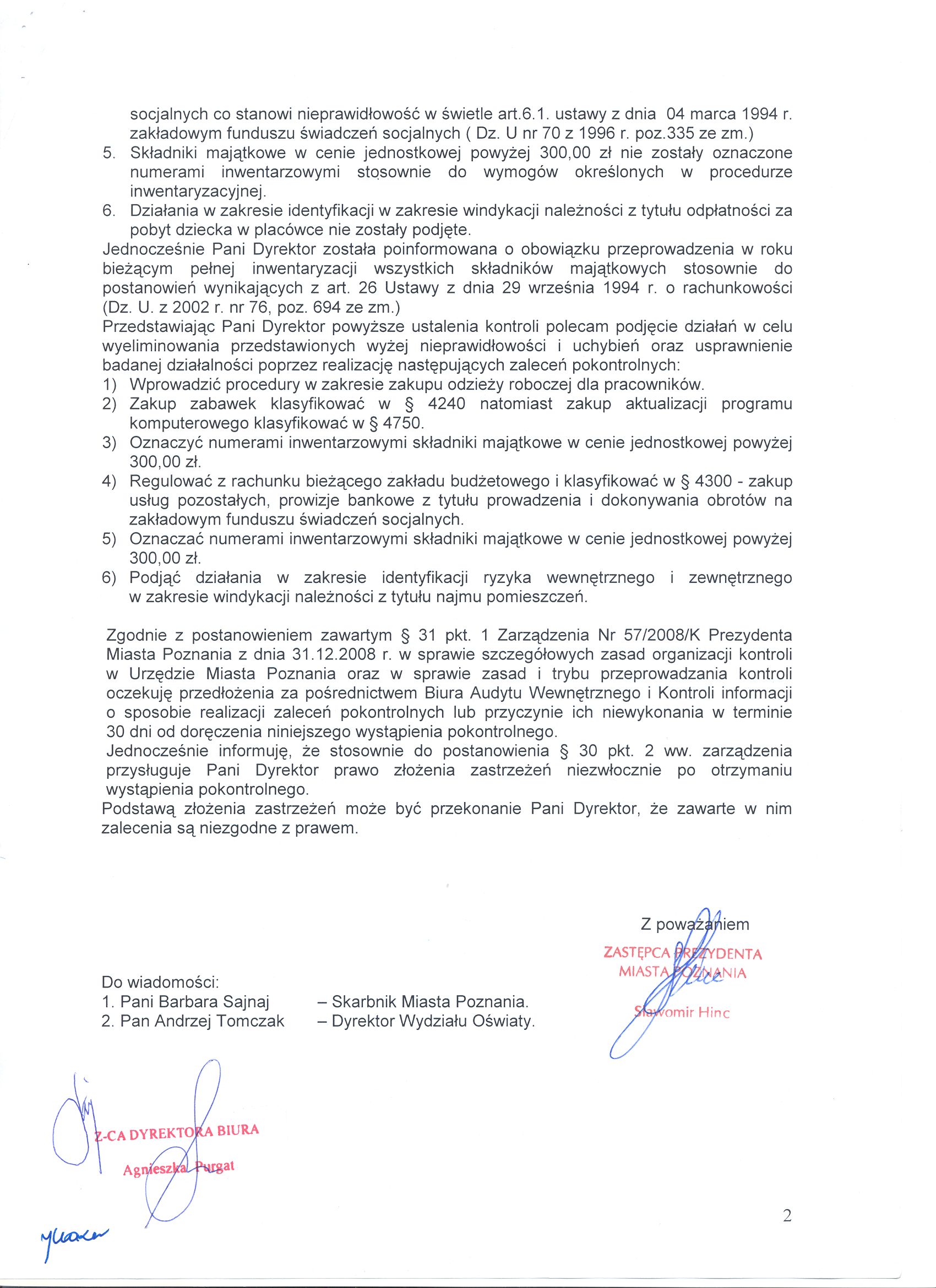 - 1.Wprowadzić procedury w zakresie zakupu odzieŻy roboczej dla pracowników.