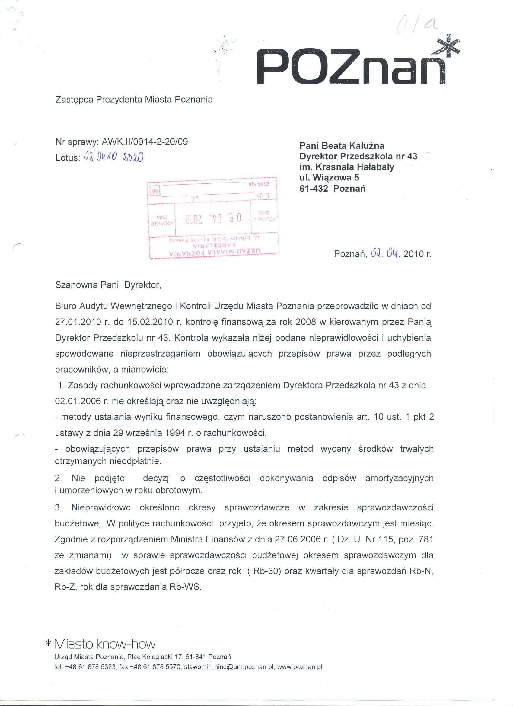 Kontrola: AWK.II/0914-2-20/09