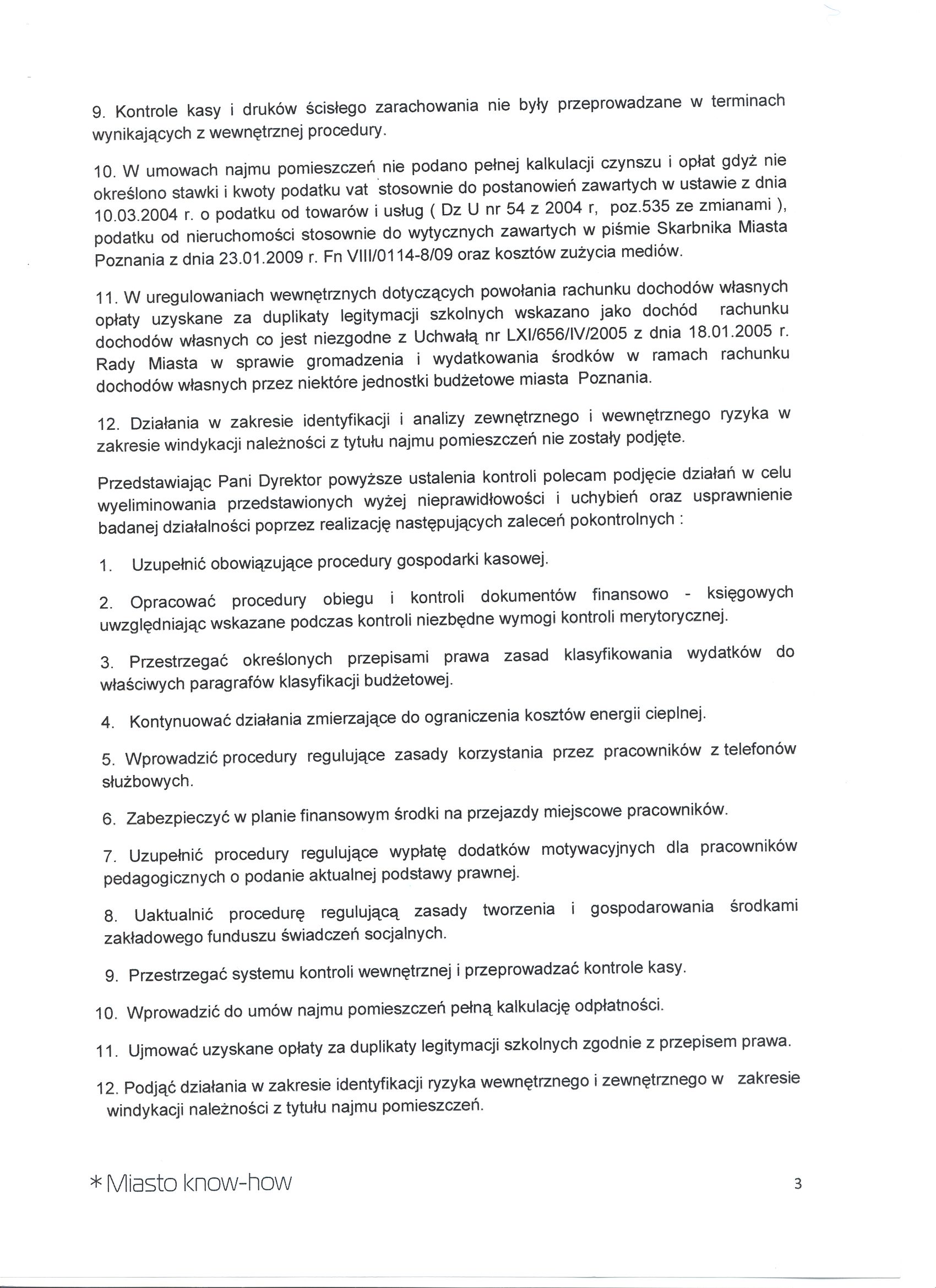 - 10.Wprowadzić do umów najmu pomieszczeń pełną kalkulację odpłatności.