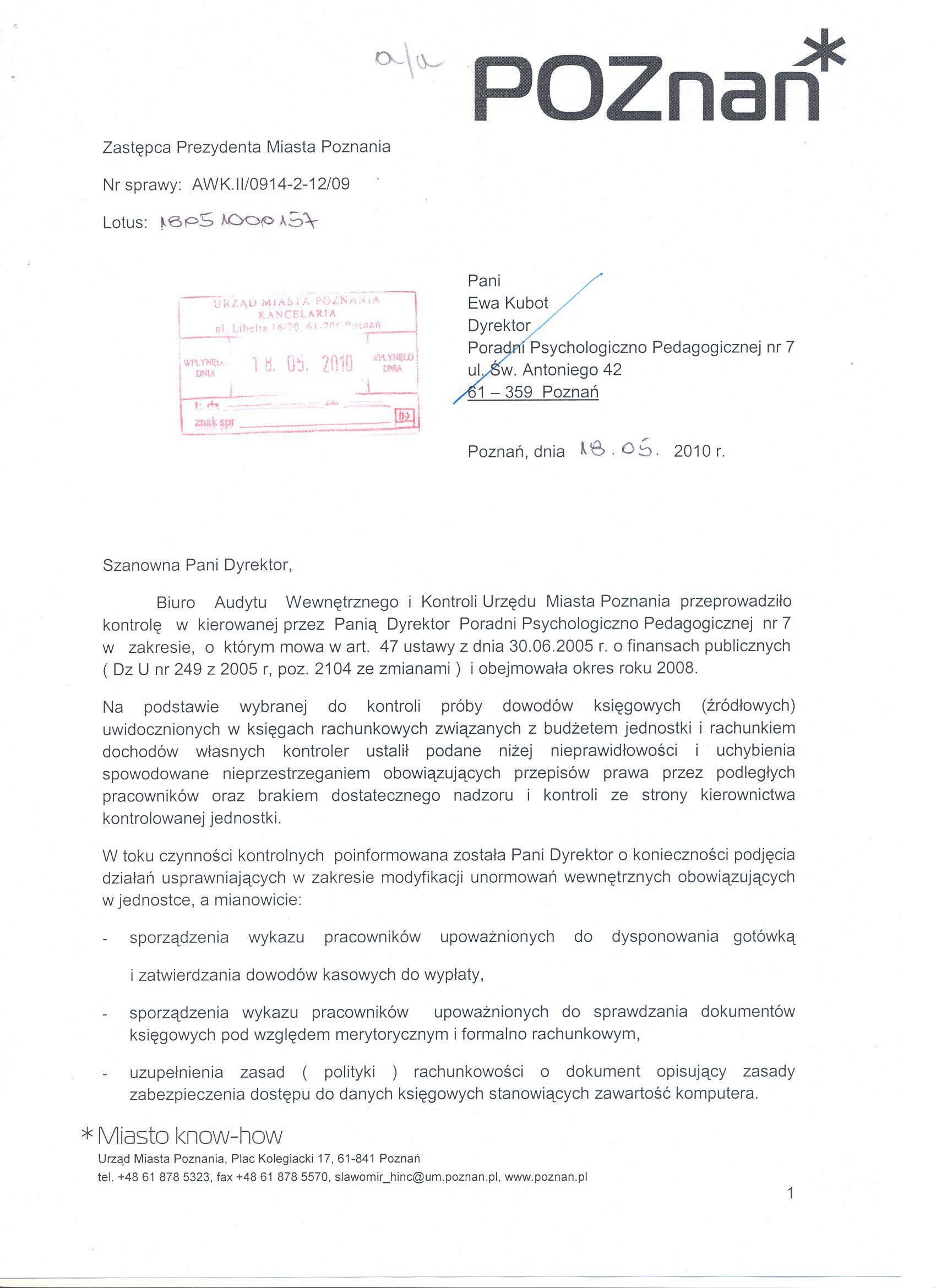 Informacja pobrana do BIP automatycznie z elektronicznego systemu zarządzania dokumentacją Urzędu Miasta Poznania.