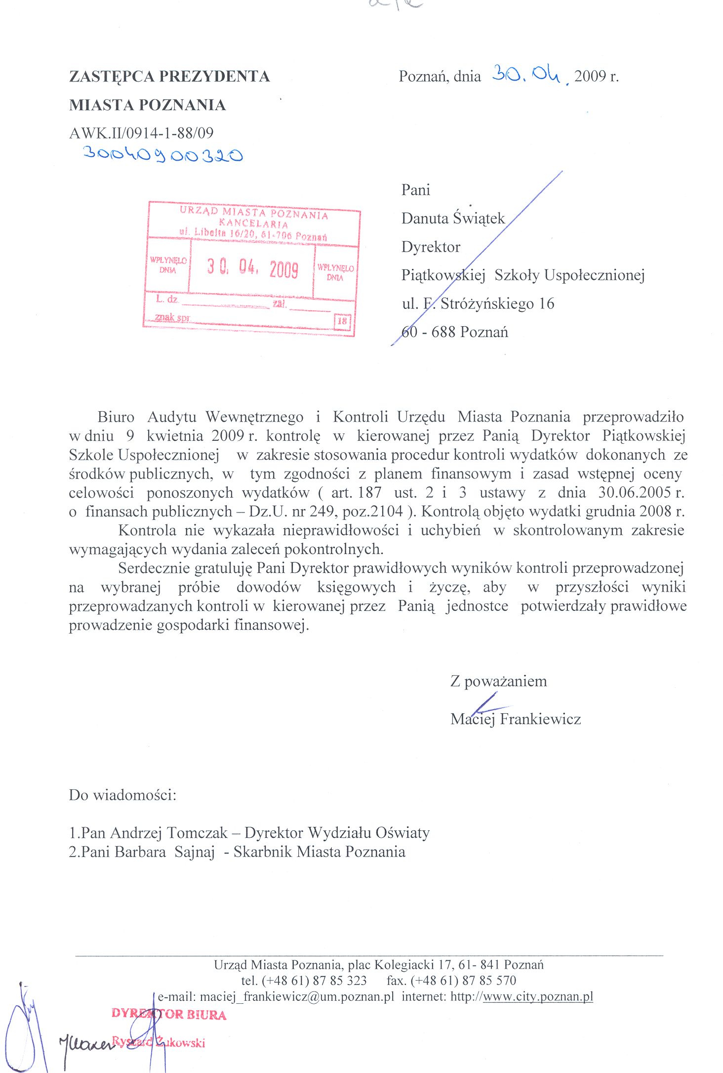 Informacja pobrana do BIP automatycznie z elektronicznego systemu zarządzania dokumentacją Urzędu Miasta Poznania.