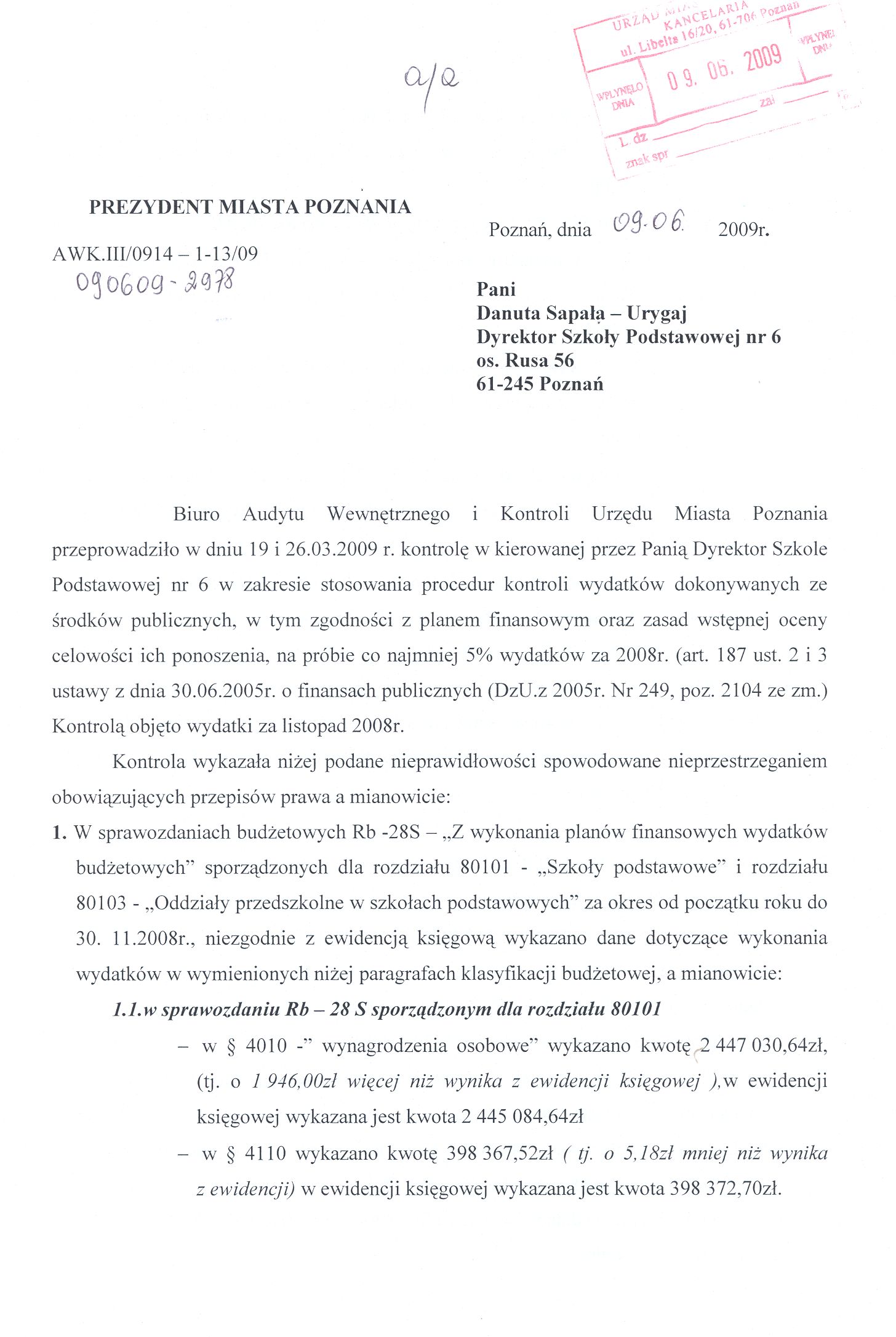 Kontrola: AWK.III/0914-1- 3/09