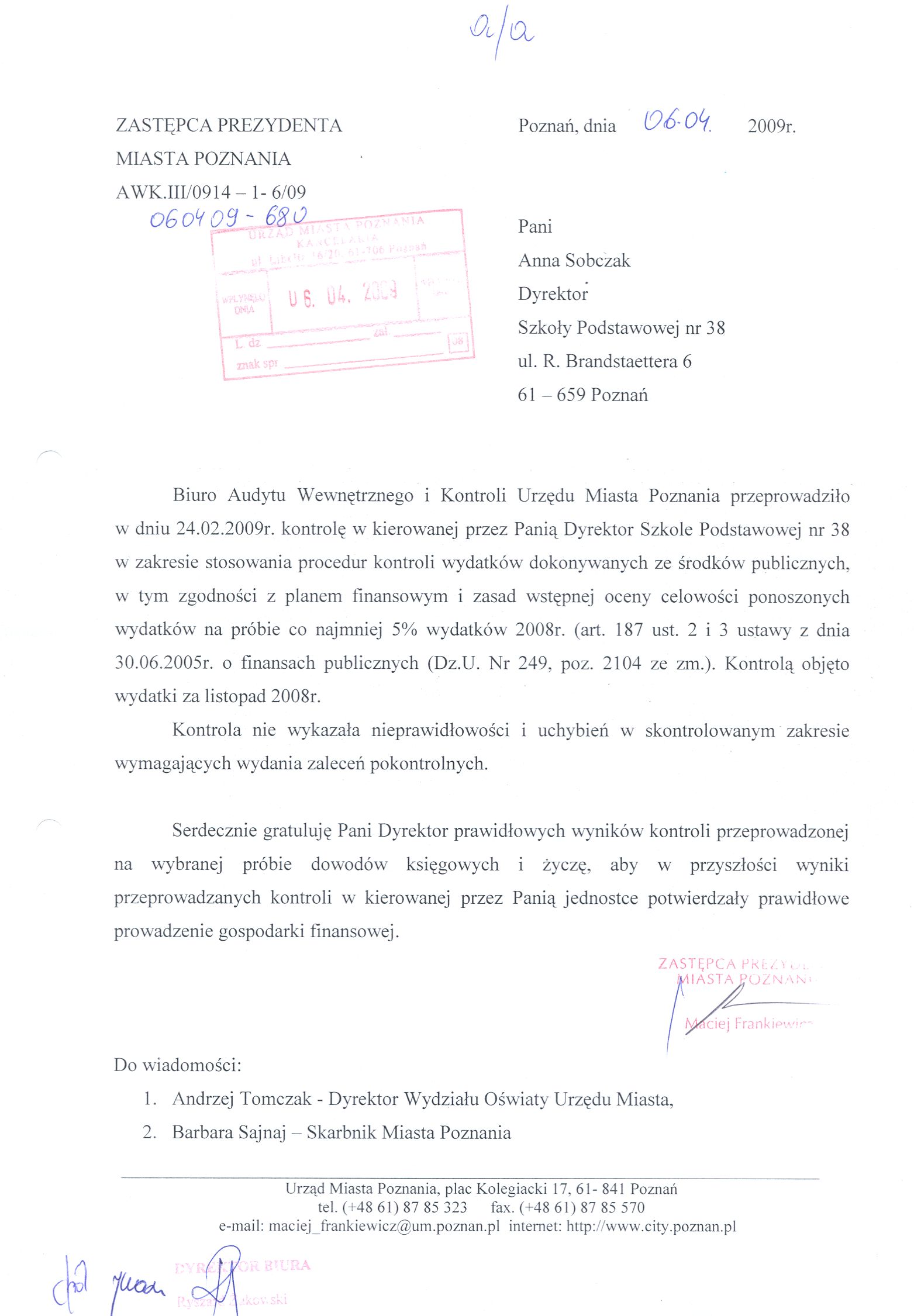 Informacja pobrana do BIP automatycznie z elektronicznego systemu zarządzania dokumentacją Urzędu Miasta Poznania.