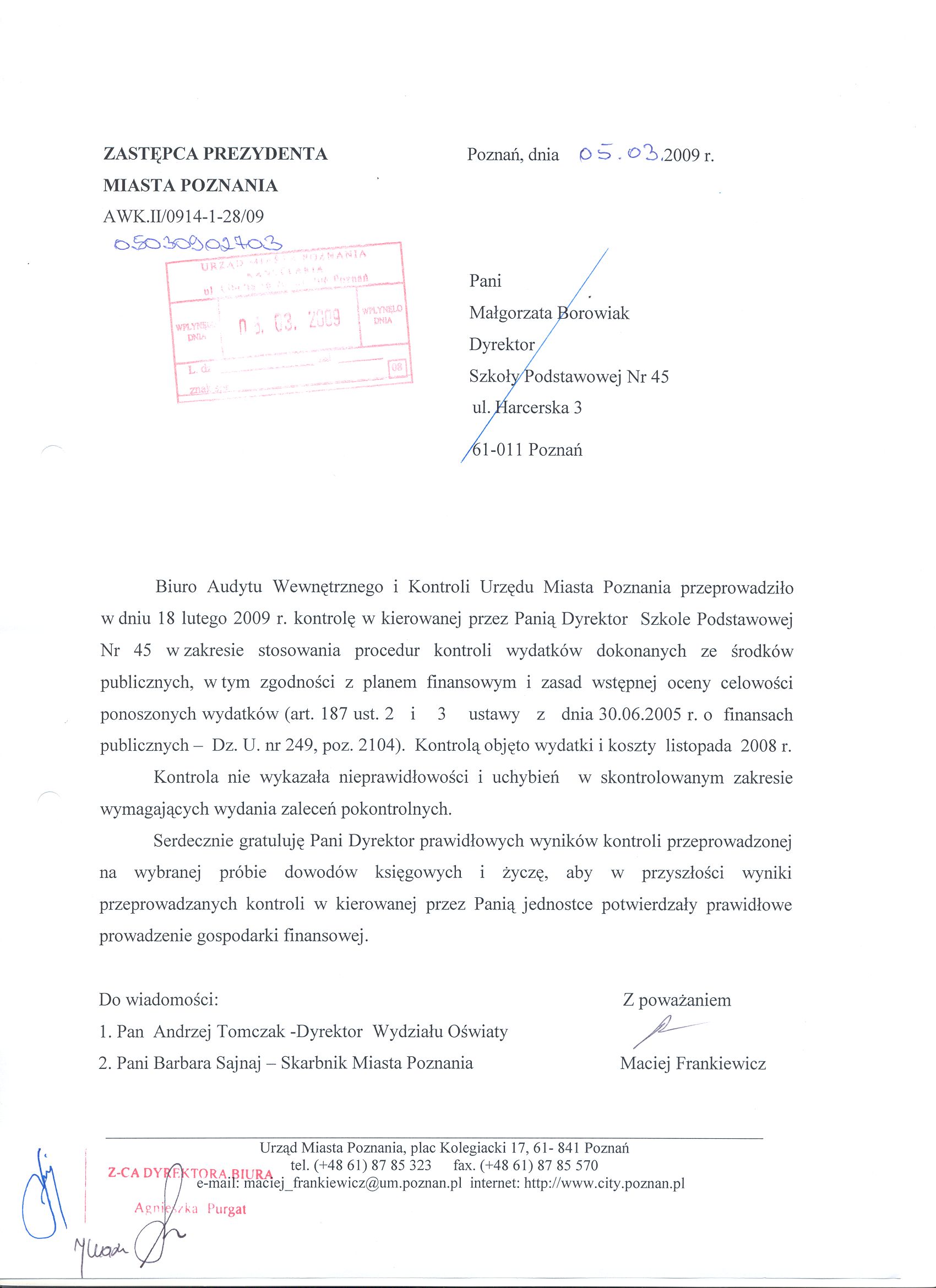 Informacja pobrana do BIP automatycznie z elektronicznego systemu zarządzania dokumentacją Urzędu Miasta Poznania.