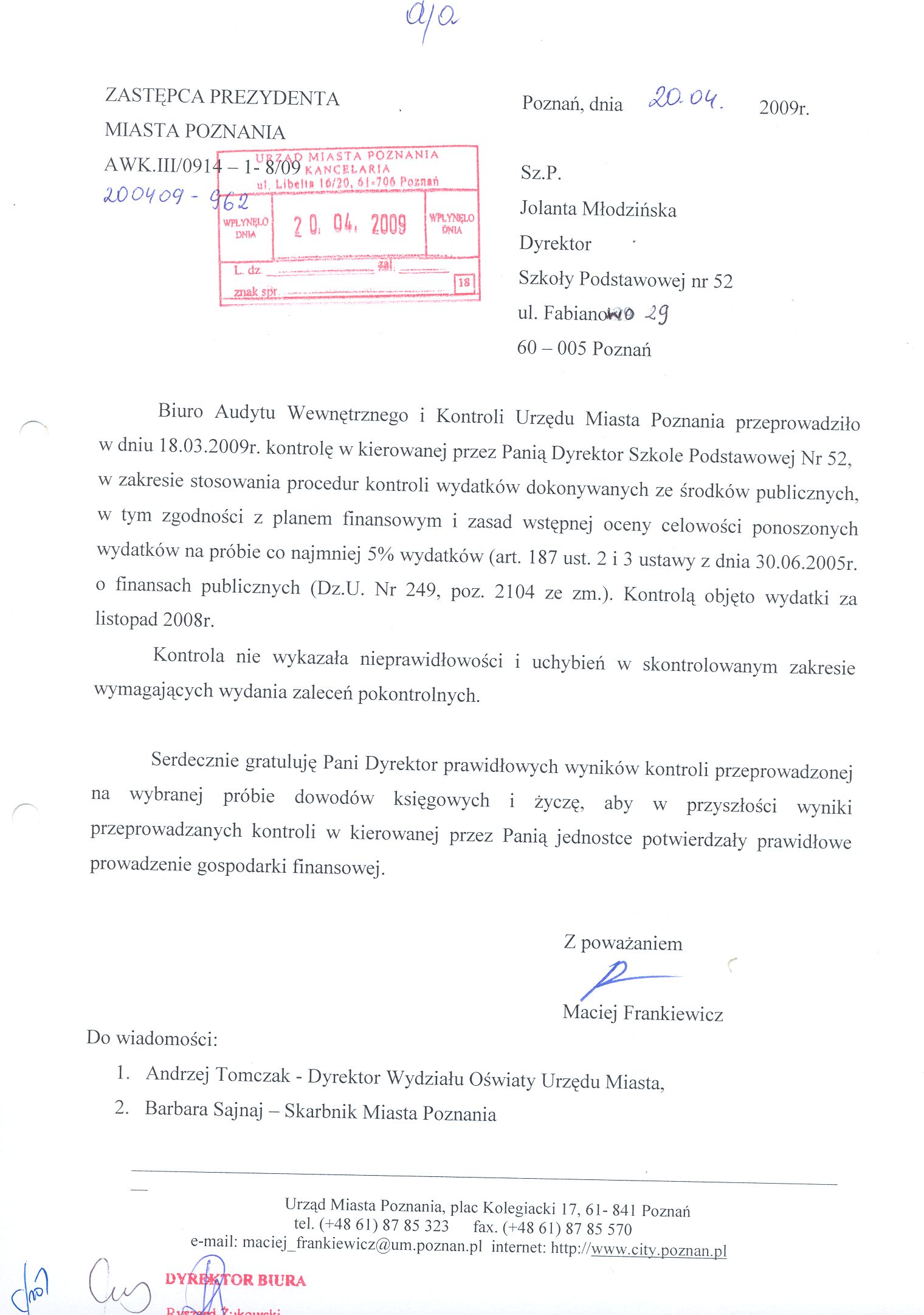 Informacja pobrana do BIP automatycznie z elektronicznego systemu zarządzania dokumentacją Urzędu Miasta Poznania.