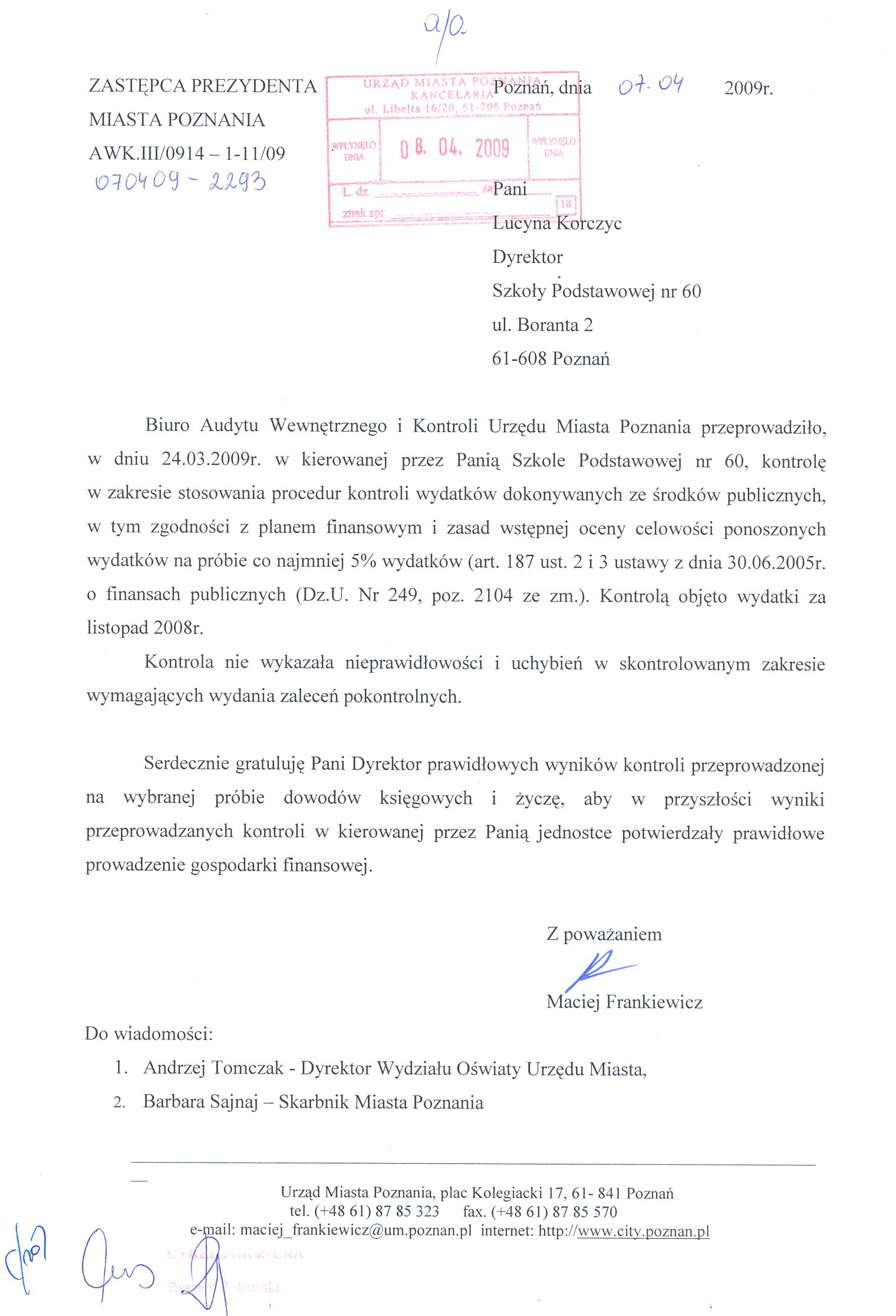 Informacja pobrana do BIP automatycznie z elektronicznego systemu zarządzania dokumentacją Urzędu Miasta Poznania.