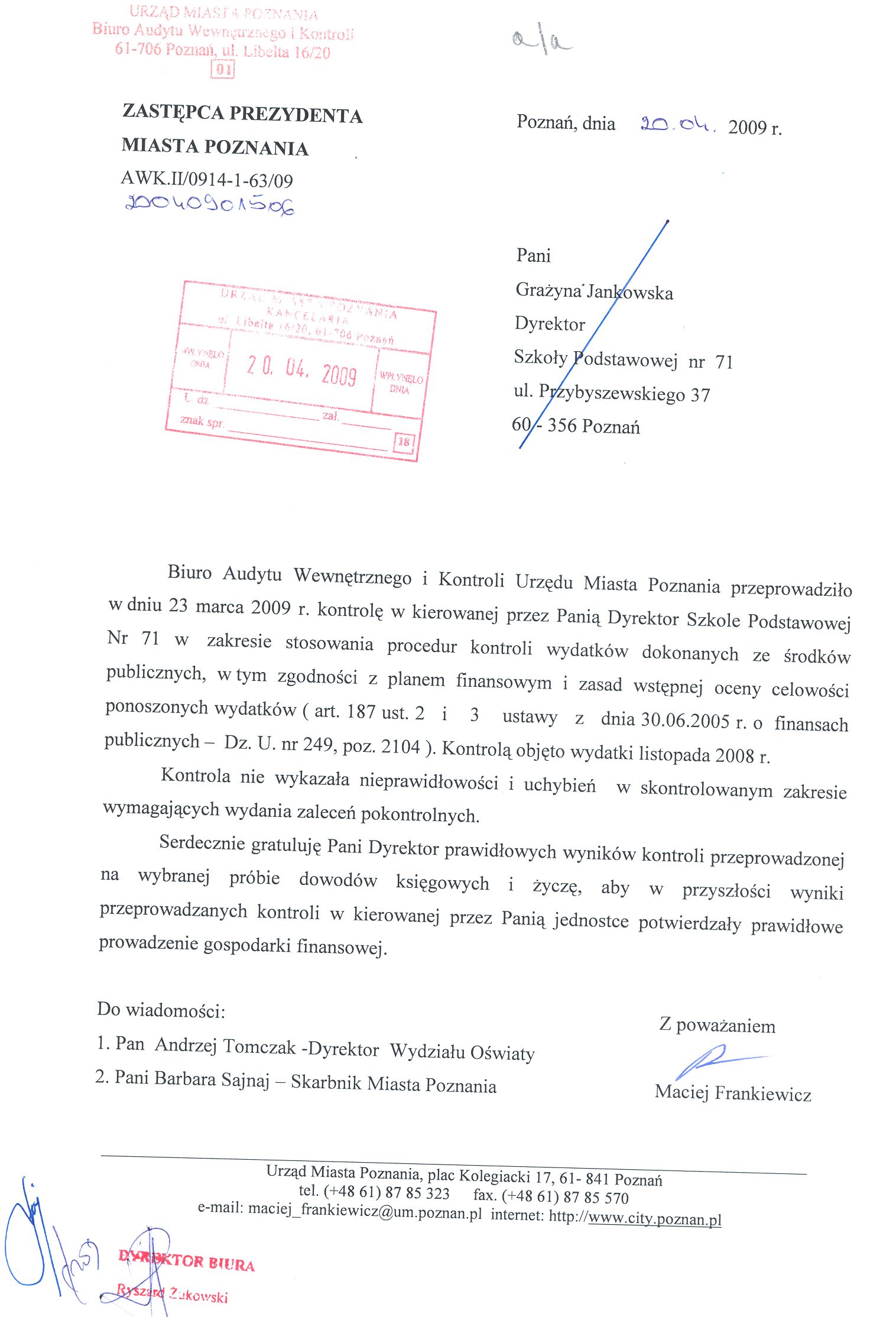 Informacja pobrana do BIP automatycznie z elektronicznego systemu zarządzania dokumentacją Urzędu Miasta Poznania.