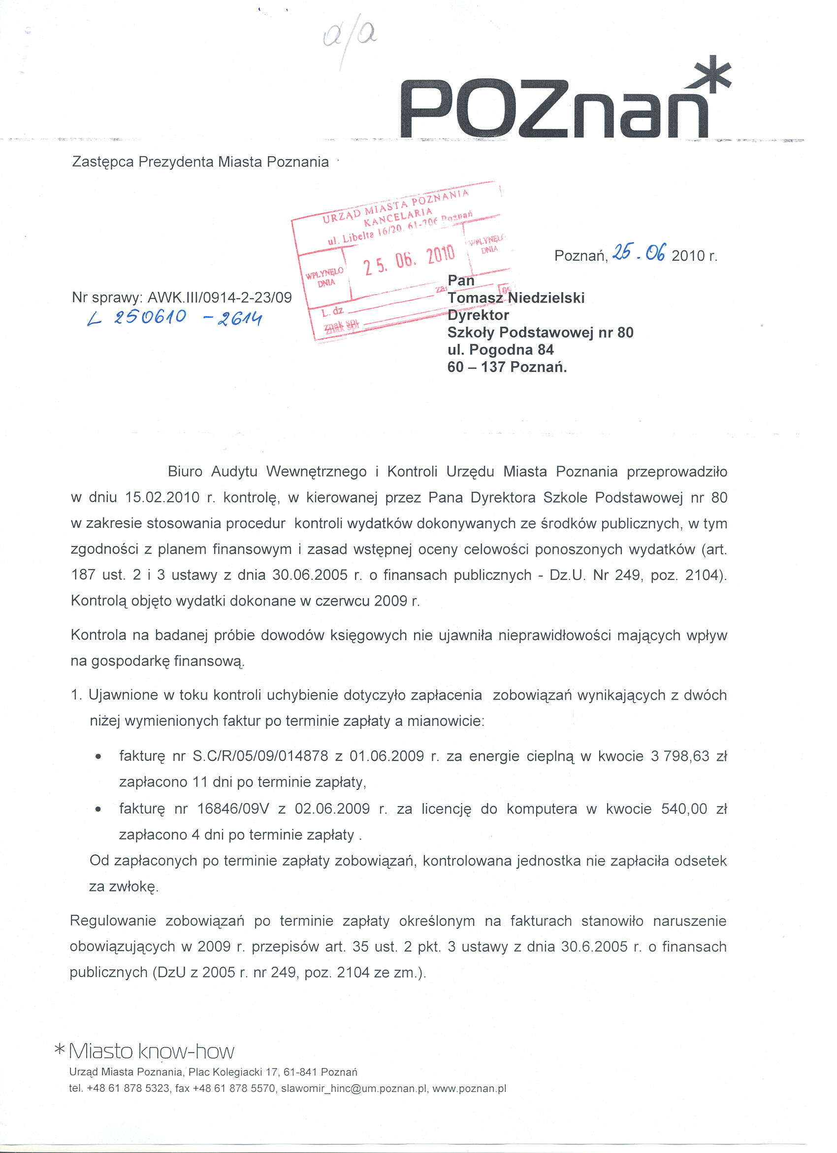 Informacja pobrana do BIP automatycznie z elektronicznego systemu zarządzania dokumentacją Urzędu Miasta Poznania.
