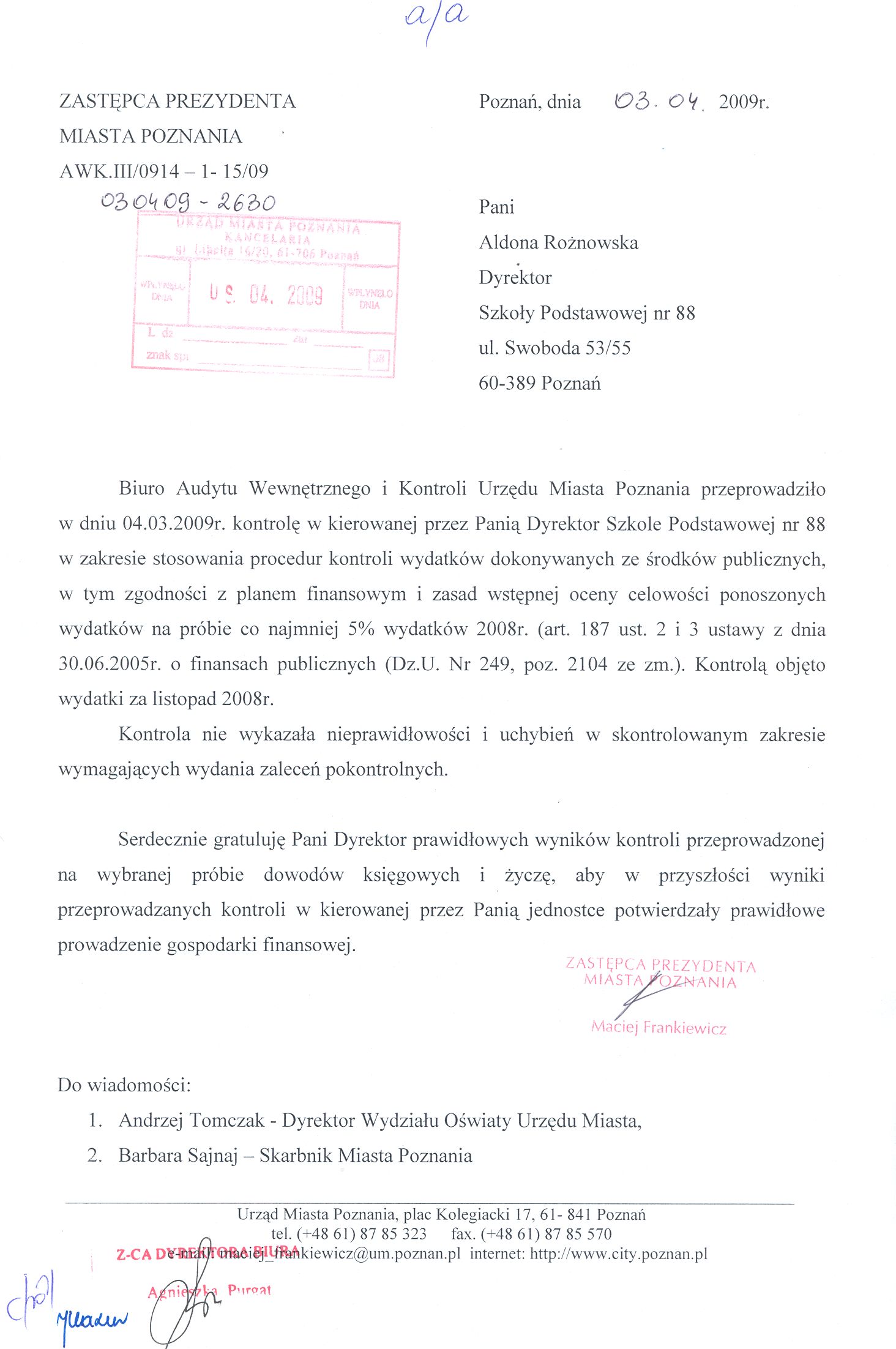 Informacja pobrana do BIP automatycznie z elektronicznego systemu zarządzania dokumentacją Urzędu Miasta Poznania.