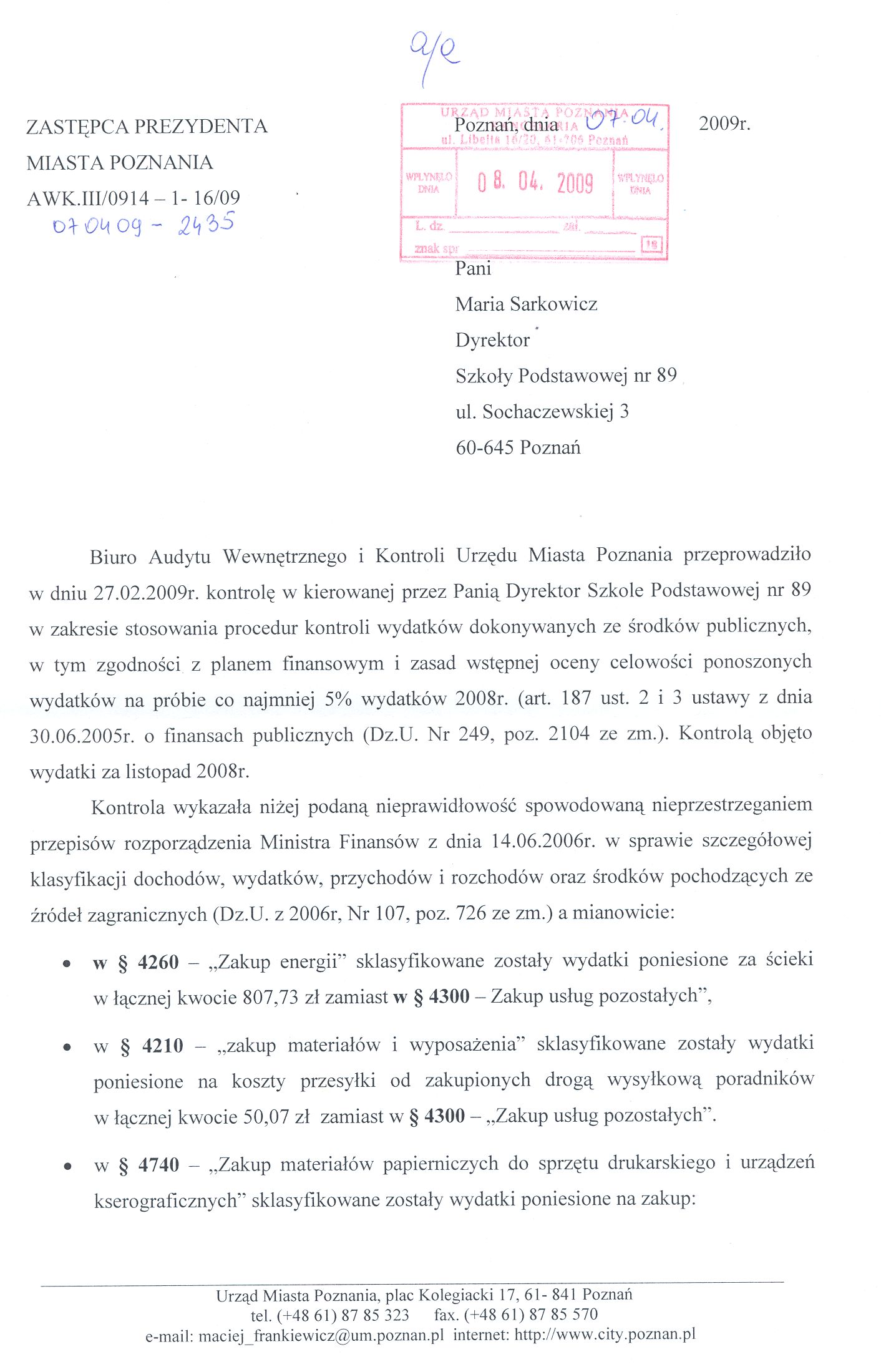 Informacja pobrana do BIP automatycznie z elektronicznego systemu zarządzania dokumentacją Urzędu Miasta Poznania.