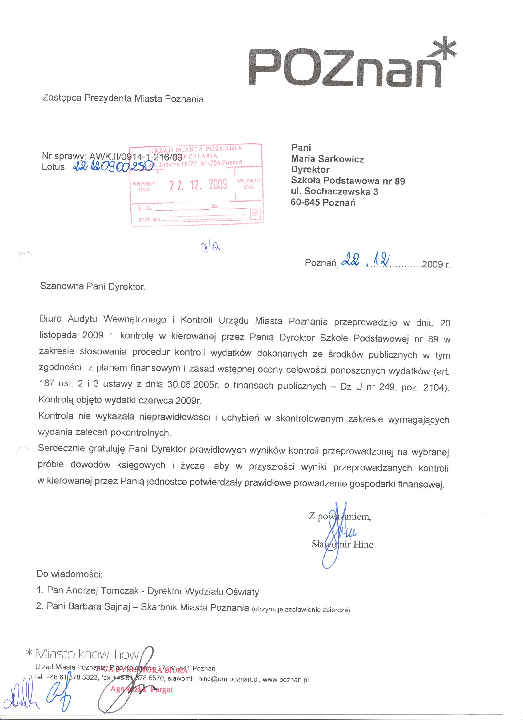 Kontrola: AWK.II/0914-1-216/09