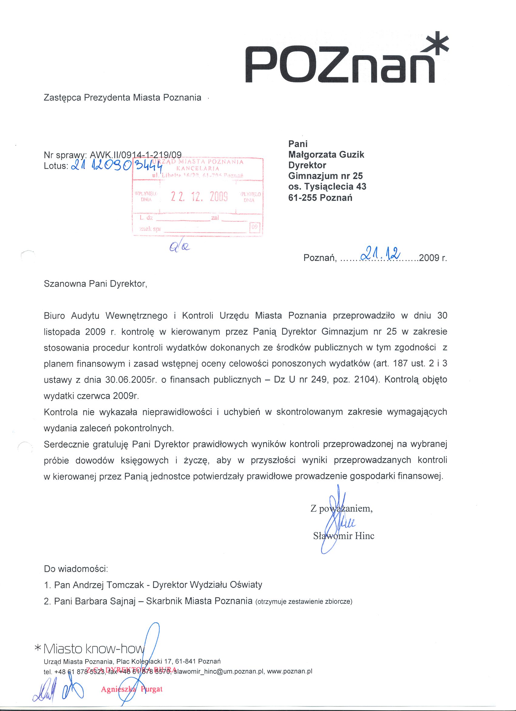 Informacja pobrana do BIP automatycznie z elektronicznego systemu zarządzania dokumentacją Urzędu Miasta Poznania.