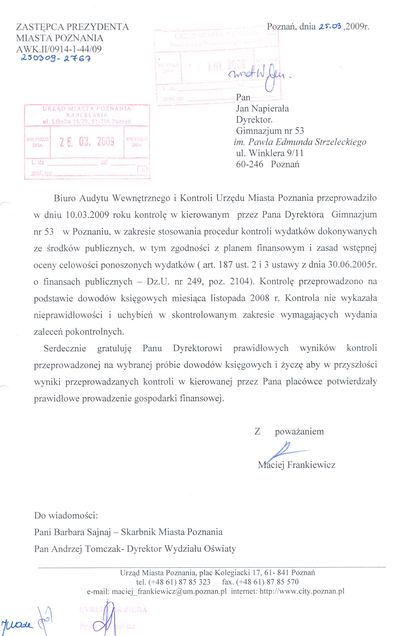 Informacja pobrana do BIP automatycznie z elektronicznego systemu zarządzania dokumentacją Urzędu Miasta Poznania.
