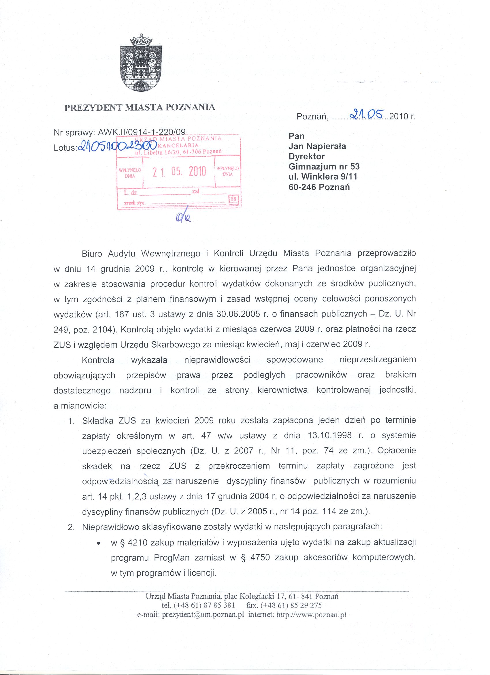 Informacja pobrana do BIP automatycznie z elektronicznego systemu zarządzania dokumentacją Urzędu Miasta Poznania.