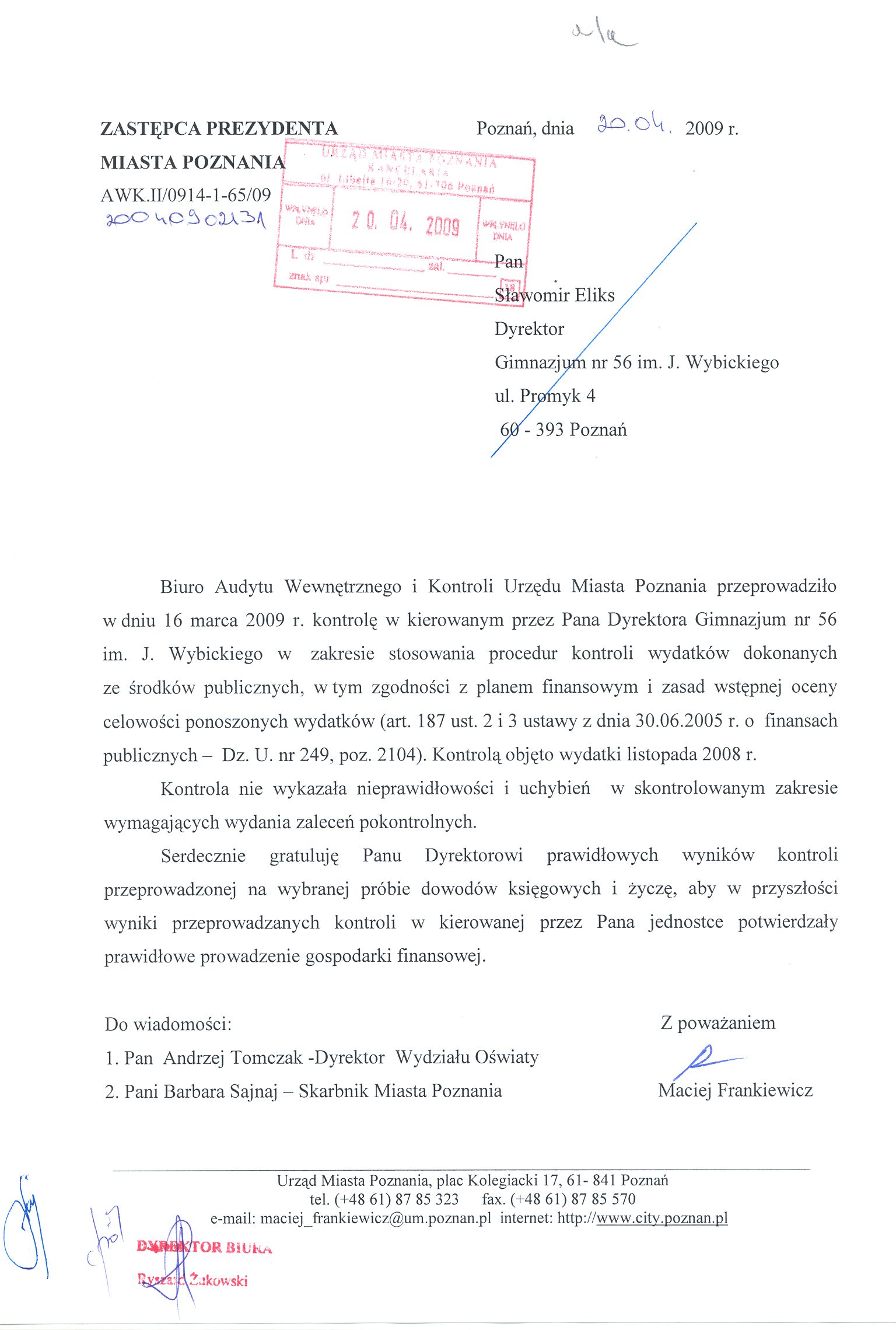 Informacja pobrana do BIP automatycznie z elektronicznego systemu zarządzania dokumentacją Urzędu Miasta Poznania.