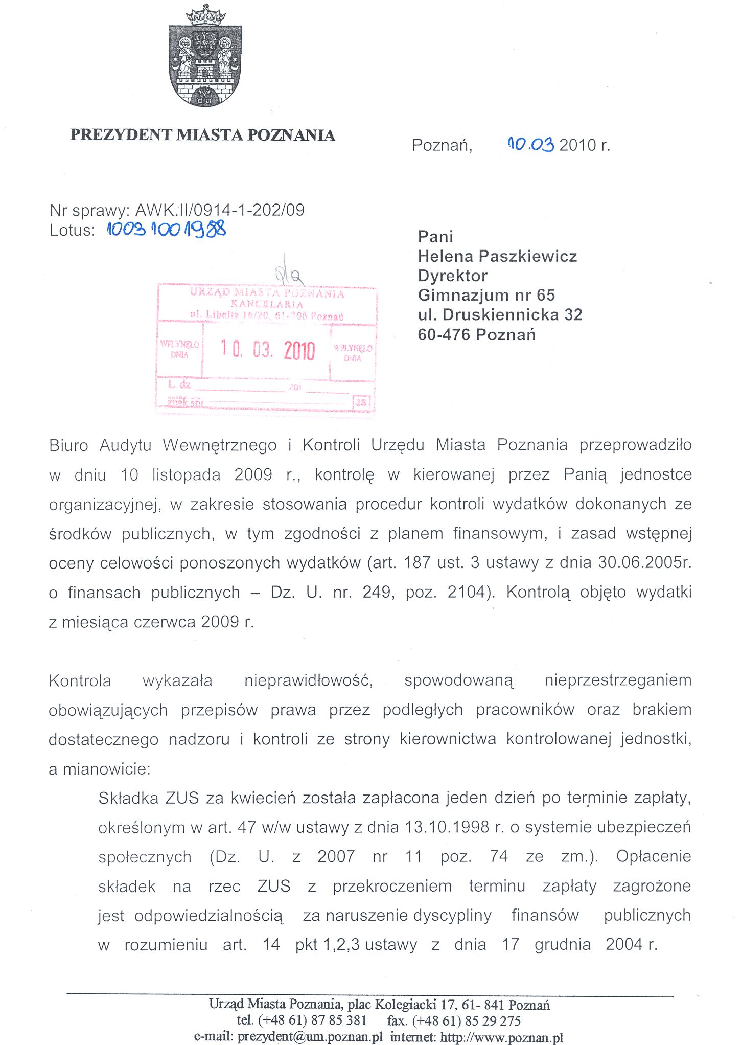 Informacja pobrana do BIP automatycznie z elektronicznego systemu zarządzania dokumentacją Urzędu Miasta Poznania.