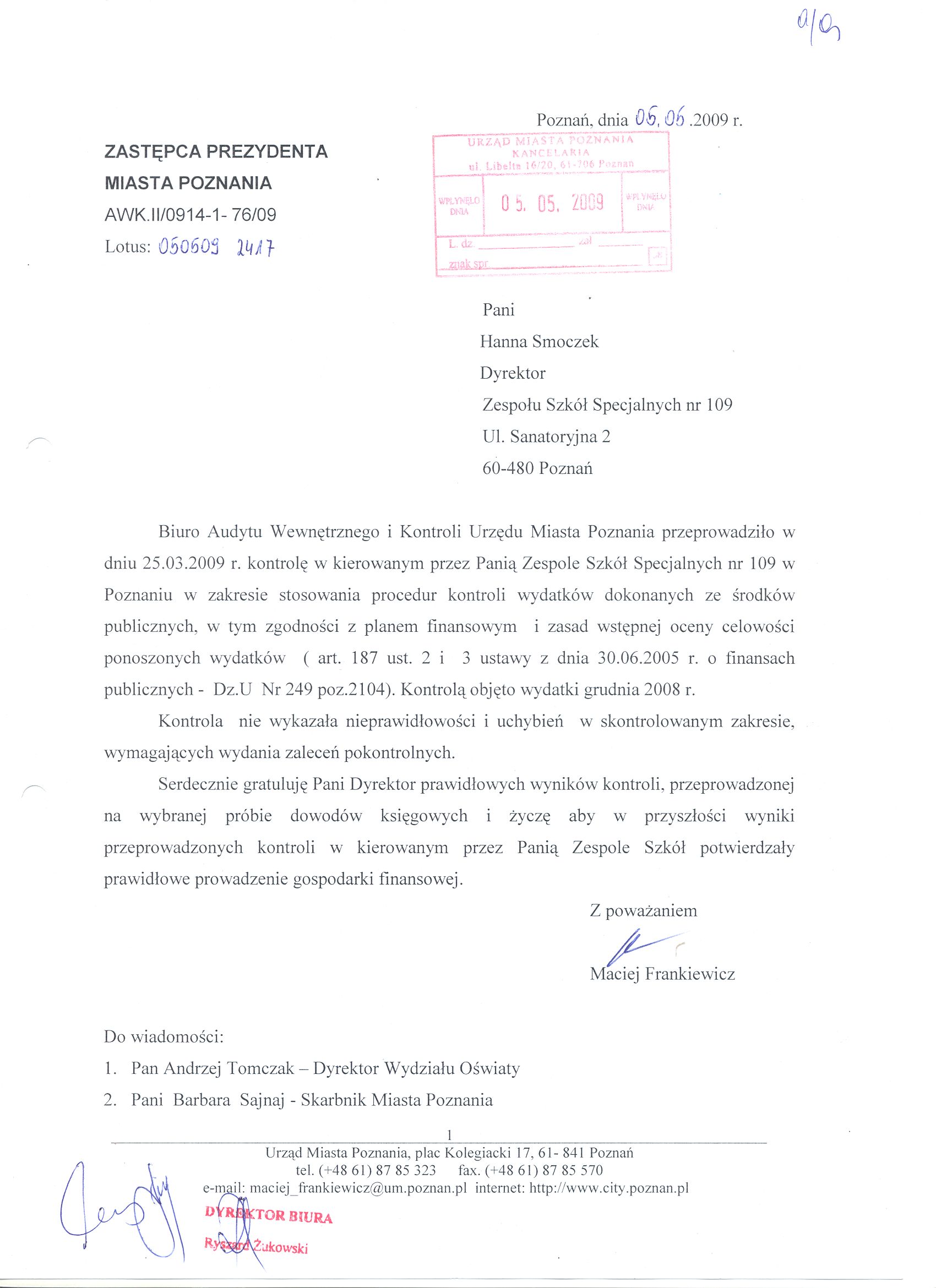 Informacja pobrana do BIP automatycznie z elektronicznego systemu zarządzania dokumentacją Urzędu Miasta Poznania.