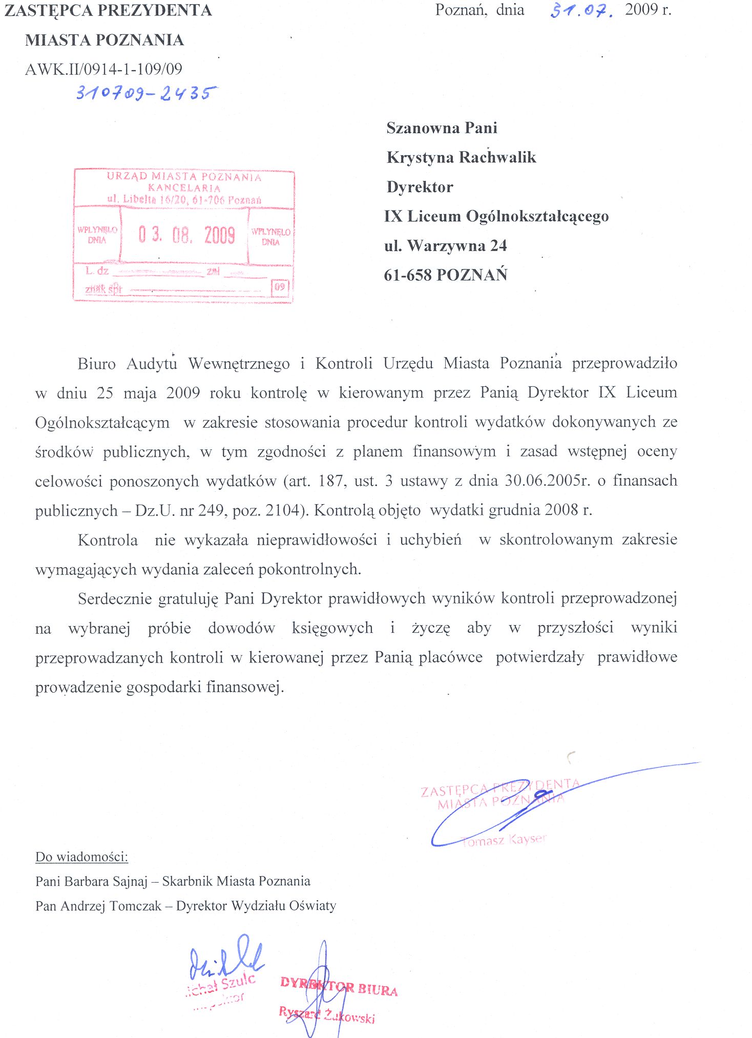 Informacja pobrana do BIP automatycznie z elektronicznego systemu zarządzania dokumentacją Urzędu Miasta Poznania.
