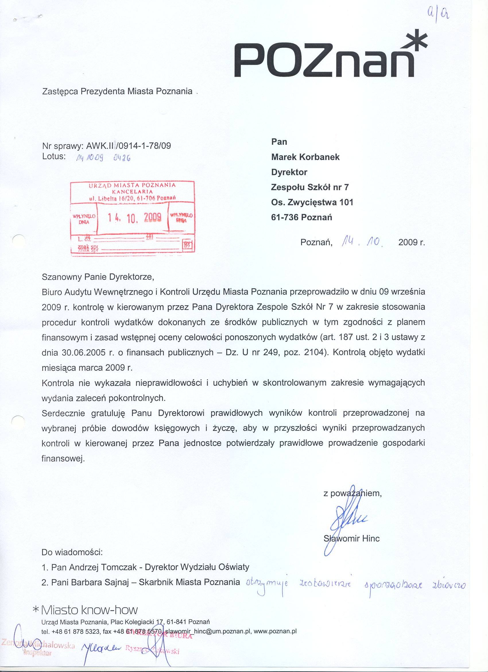 Informacja pobrana do BIP automatycznie z elektronicznego systemu zarządzania dokumentacją Urzędu Miasta Poznania.