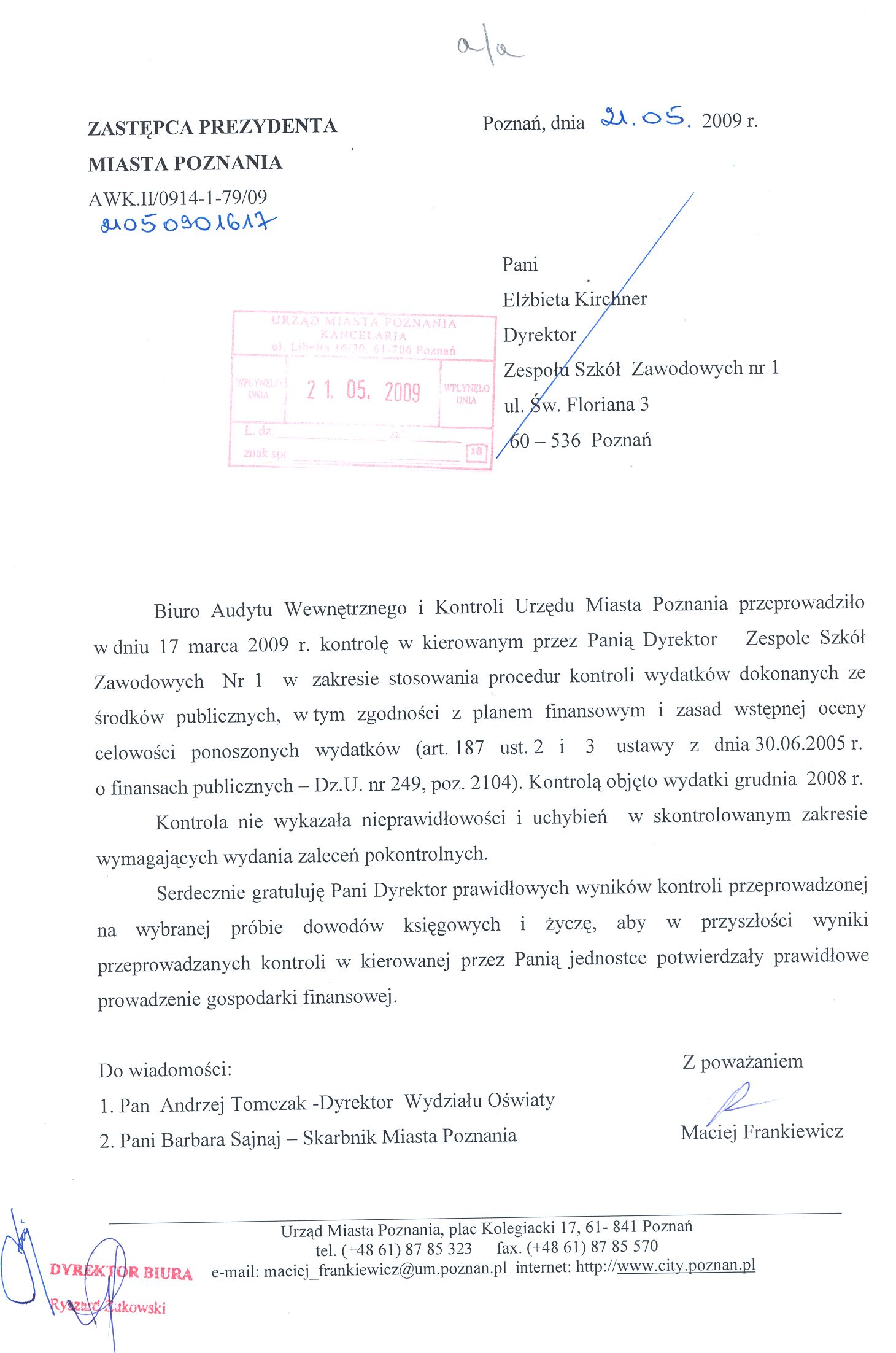 Informacja pobrana do BIP automatycznie z elektronicznego systemu zarządzania dokumentacją Urzędu Miasta Poznania.