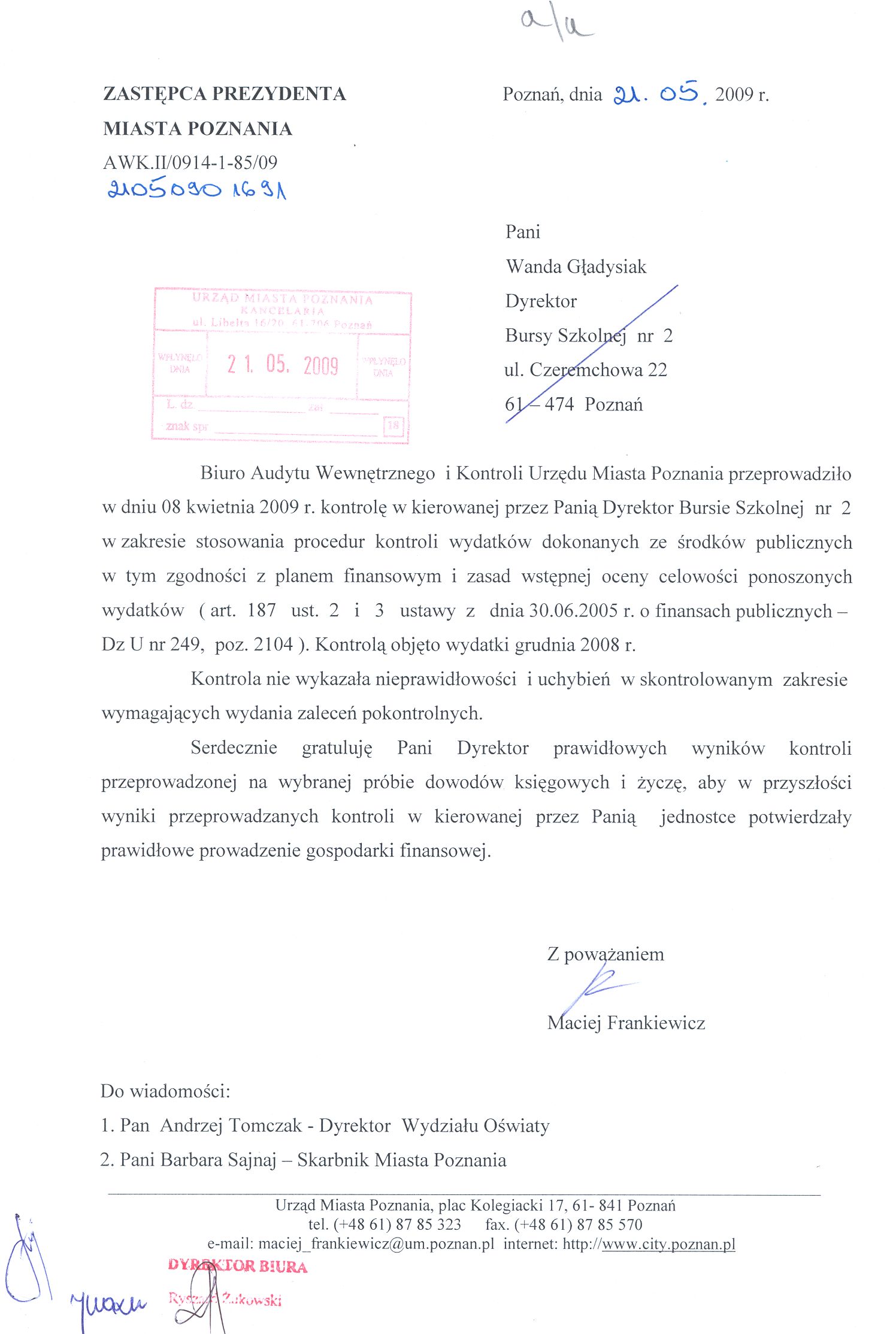 Informacja pobrana do BIP automatycznie z elektronicznego systemu zarządzania dokumentacją Urzędu Miasta Poznania.