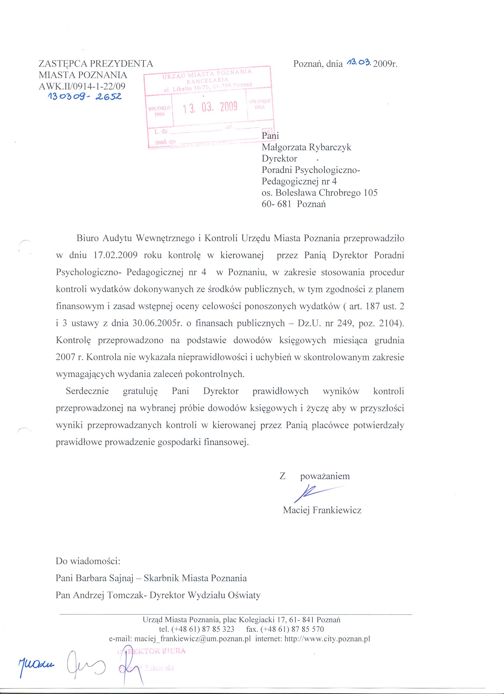 Informacja pobrana do BIP automatycznie z elektronicznego systemu zarządzania dokumentacją Urzędu Miasta Poznania.